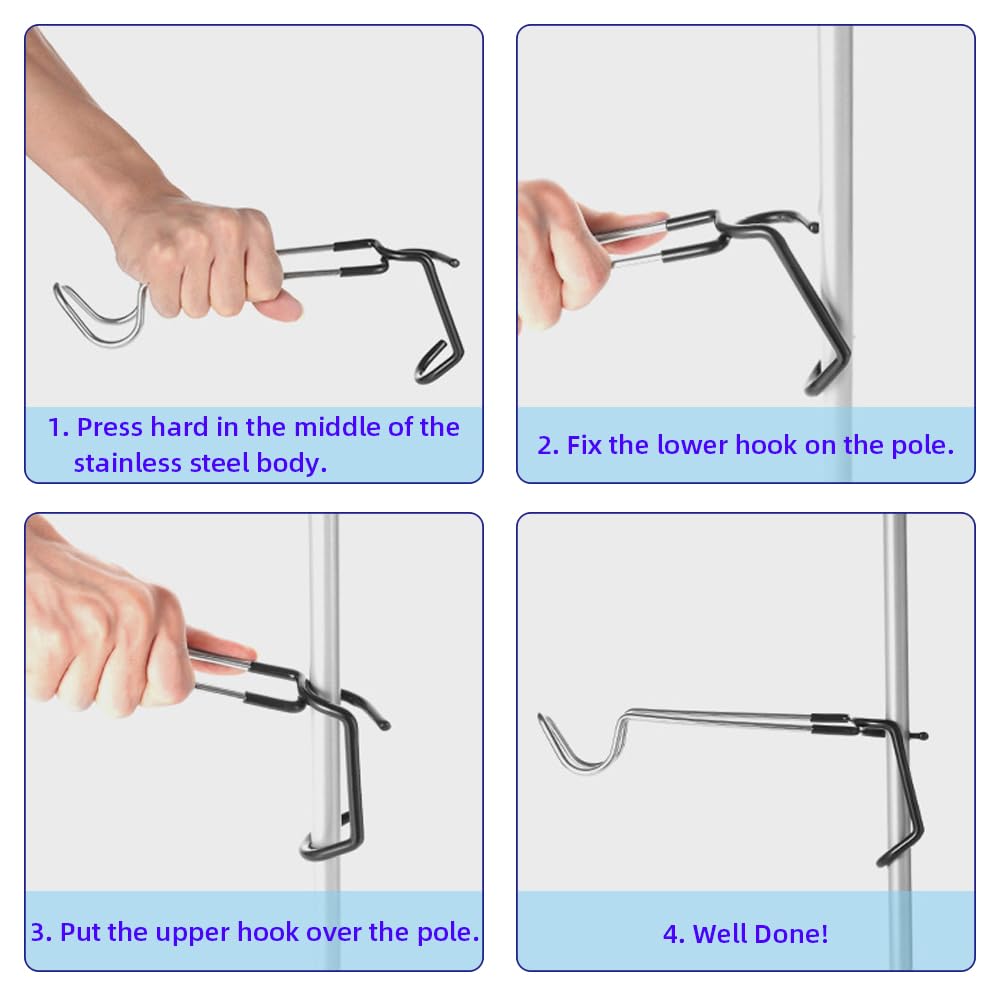- 【 Size and Quantity 】 The package contains 2 Heavy Duty Outdoor Light Hooks.This Hooks measures 10.2 inches long and 4 inches high, which is suitable for poles less than 1.26 inches (32mm) in diameter, like tent poles, branches, garden railings, water tubes, patio railings, etc.