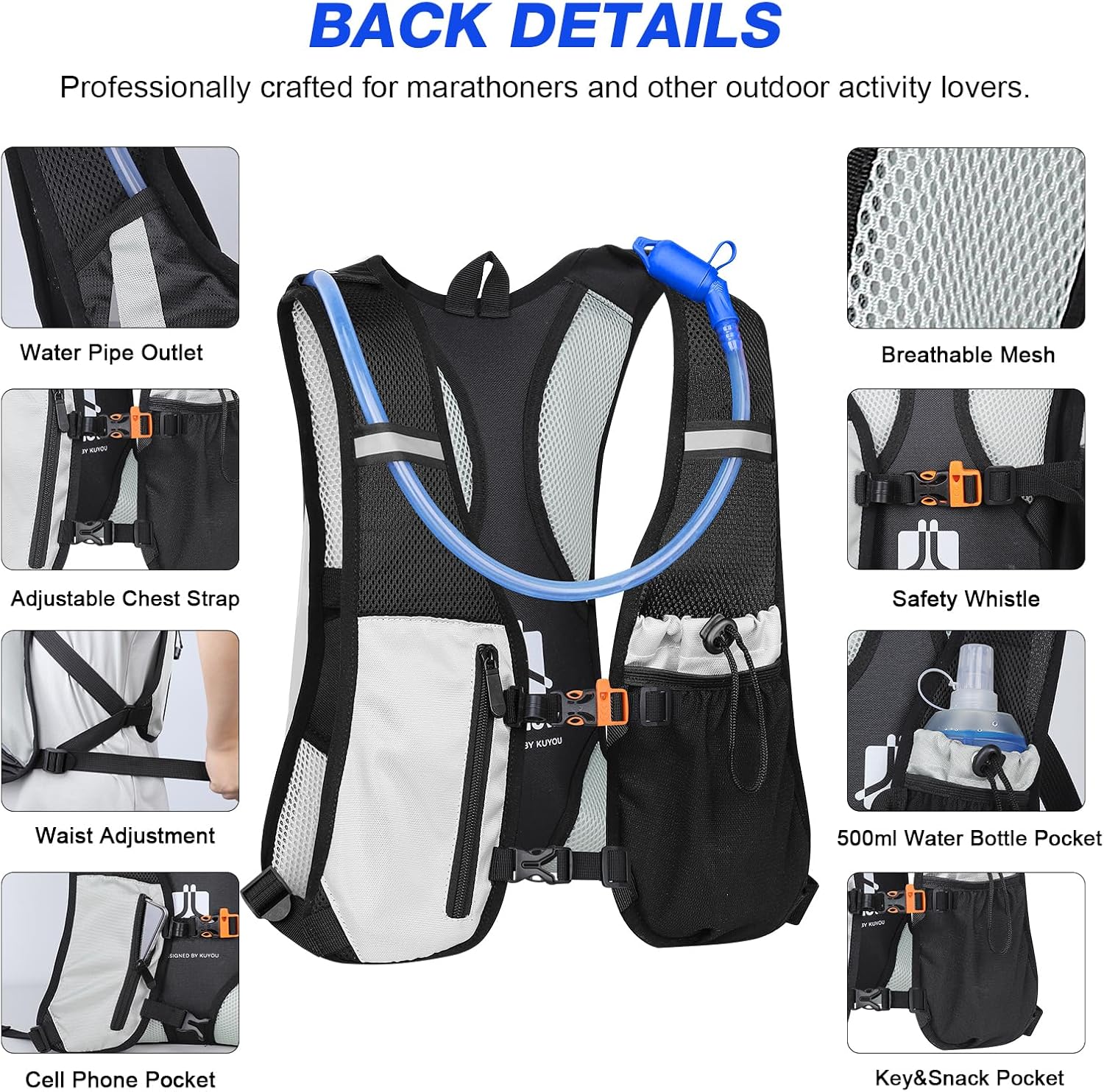KUYOU Running Hydration Vest - Lightweight Insulated Hydration Backpack with 2L Water Bladder, Adjustable Chest Straps and Reflective Water Backpack for Trail Running Marathon Race Hiking Cycling