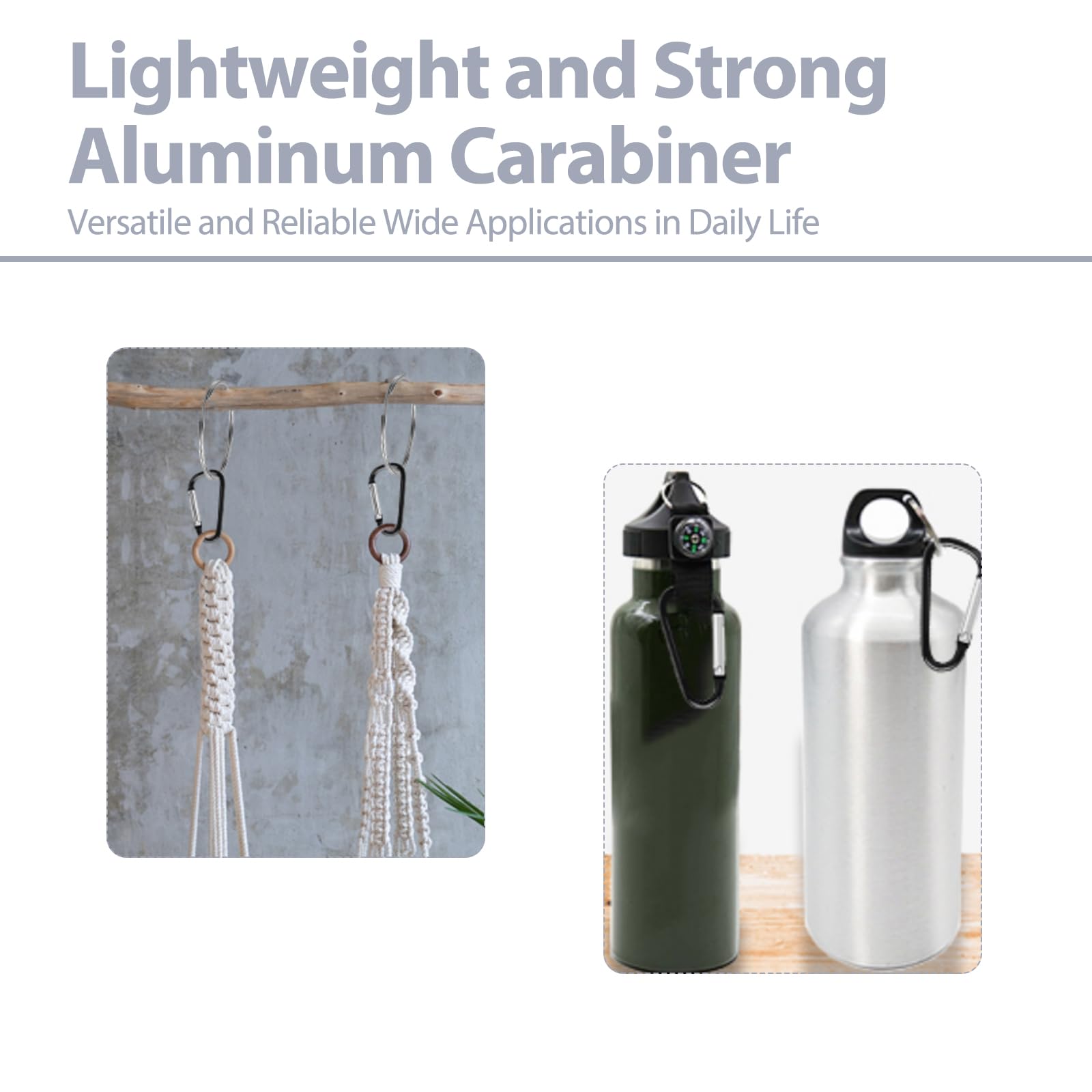 - Aircraft-Grade Aluminum Build: Crafted from aircraft aluminum material, this large carabiner clip is both lightweight and exceptionally strong, capable of supporting a maximum secure load of about 55lbs. Its elegant design combines practicality with durability