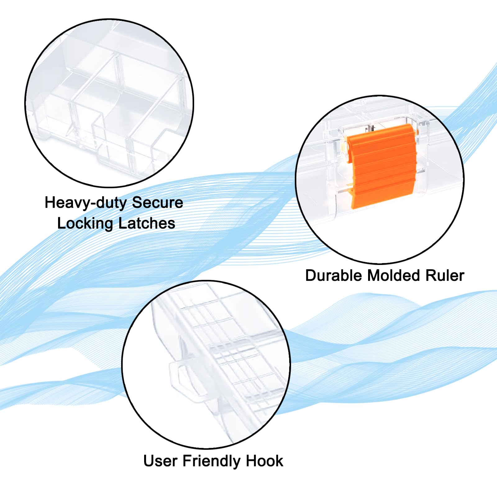 - Quick identification: Clear tackle box storage box transparent design allows you to see the items inside the fishing tackle box at a glance, making it easy and quick to find the desired bait without having to open the box. This enables you to quickly and easily locate and change baits in an instant, saving time and effort, and allowing you to focus more on fishing activities, fish tackle box enhancing fishing efficiency and enjoyment.