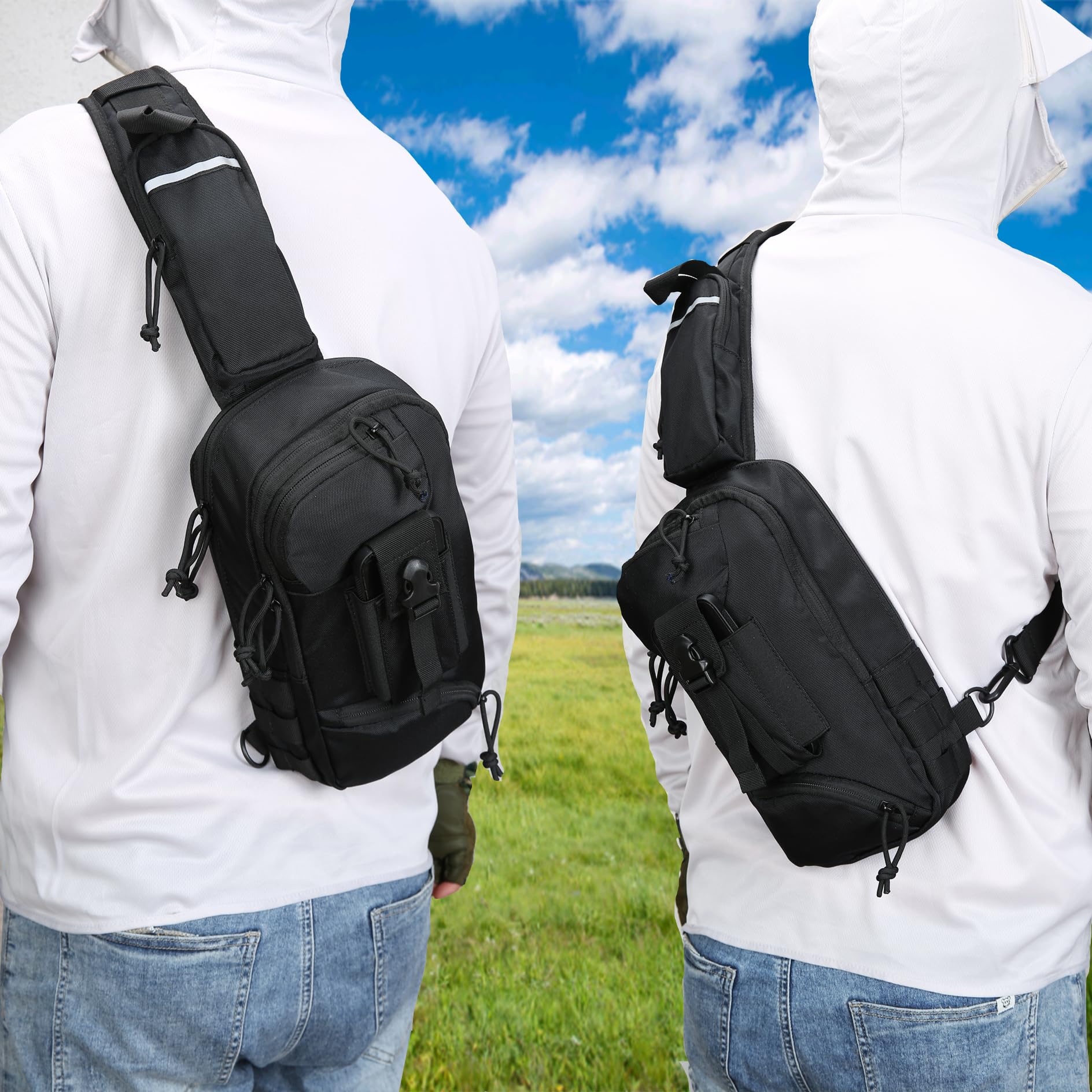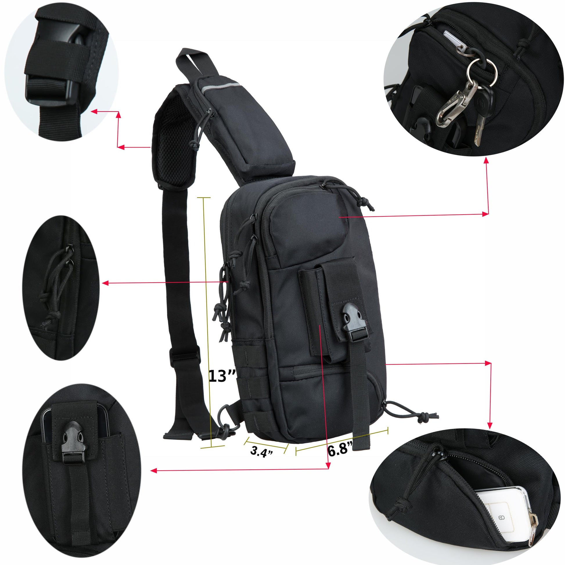 - MULTI-FUNCTIONAL: The sling backpack can be used as the tactical sling chest bag and if you need, you can use the sling bag as usual normal tablet bag for the dual holsters can be removable; Seen as Stylish, Unisex and Effective,the sling bag Can be used messenger bag/shoulder bag/cross body backpack/casual day pack/sling bag/chest bag/travel bag/working or business bag, suitable for office, outdoor, business and other occasions.