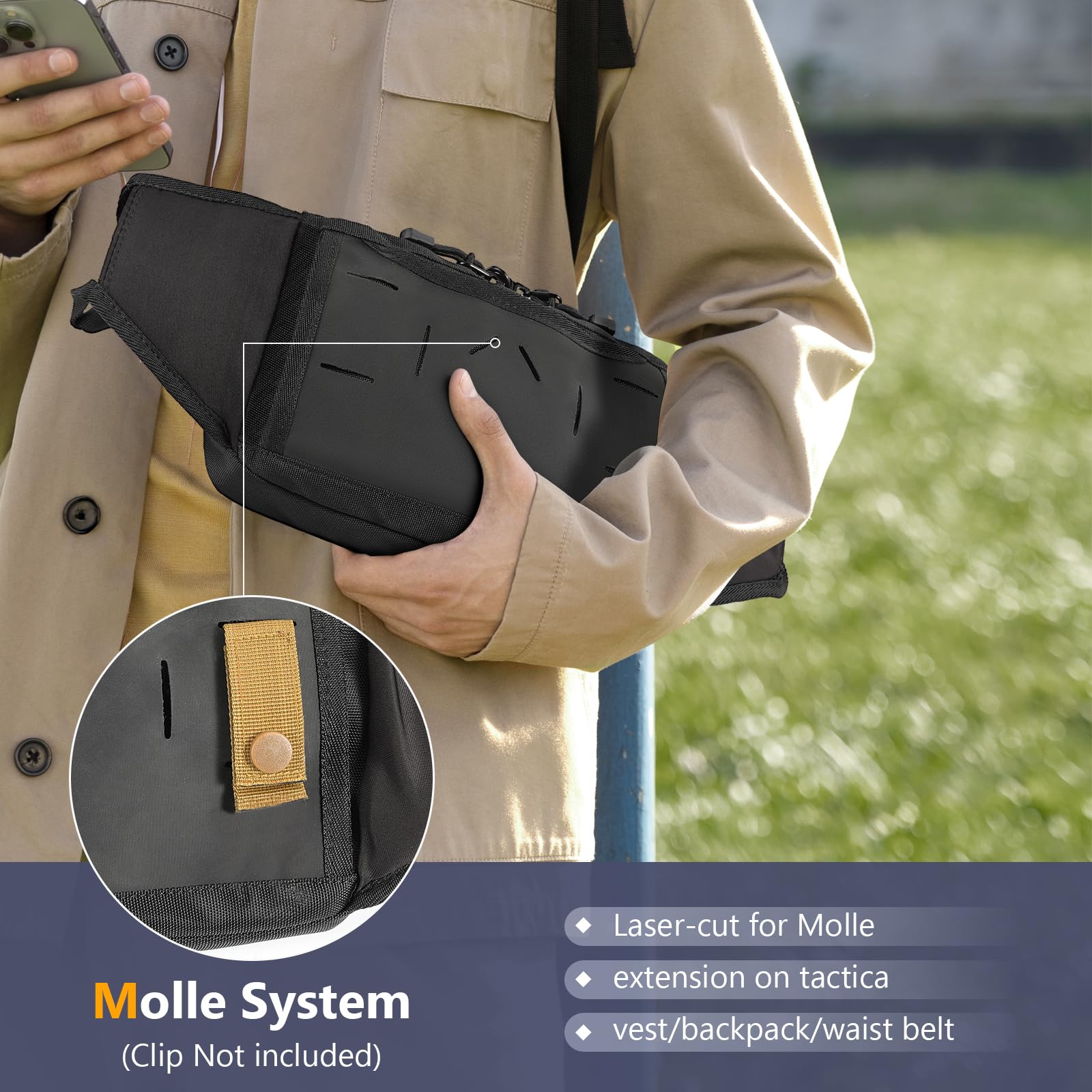 LarKoo Tactical Fanny Pack for Concealed Carry Sling Bag CCW Crossbody Waist Bag for Men&Women EDC Gear with Adjustable Strap (Black)