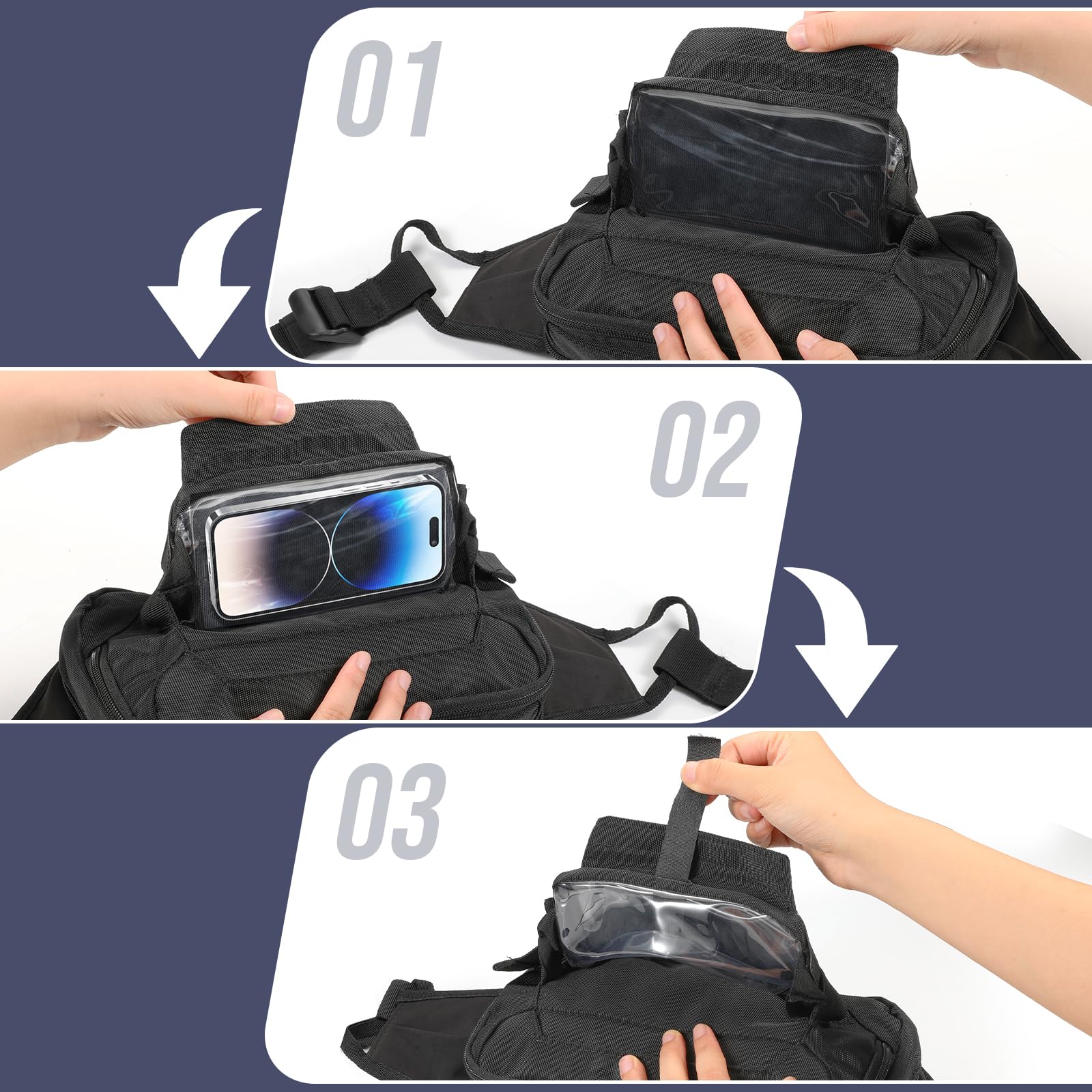 - 【CUSTOMIZED COMFORT】: Tailor your experience with the adjustable waist belt, spanning from 31.5” to 44”,touch screen phone holder, conceal carry holster, of which feature ensure a comfortable and secure fit for a wide range of users, so you can embark on your adventures without any discomfort. Explore freely, knowing your gear is not only safely stowed but also perfectly fitted.