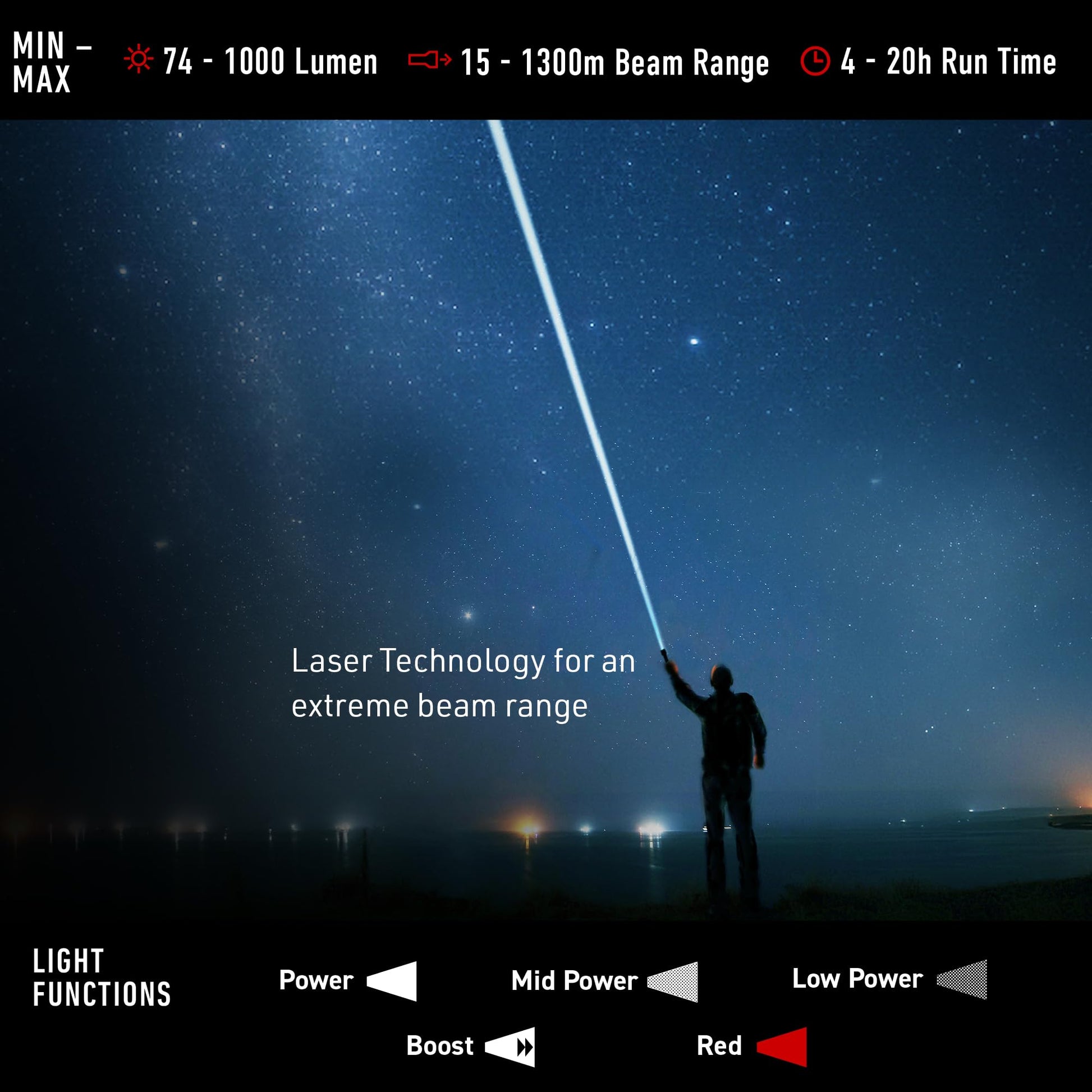 - Laser Excited Phosphor Technology: Delivers a highly focused white light with an extereme beam range