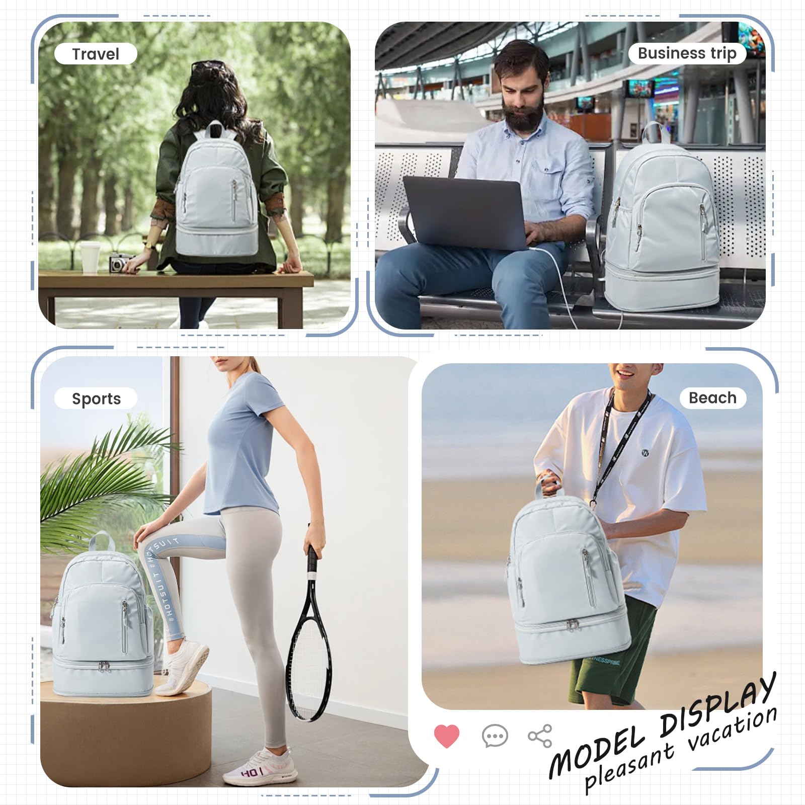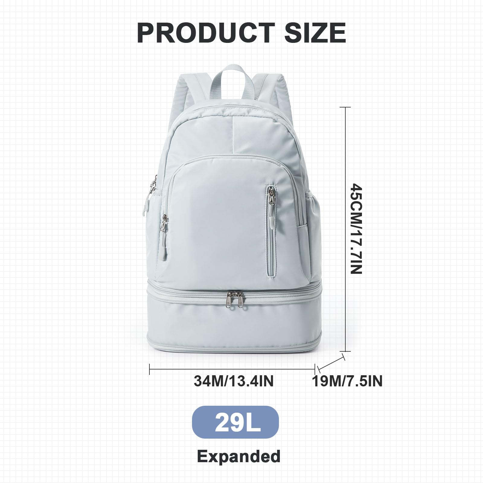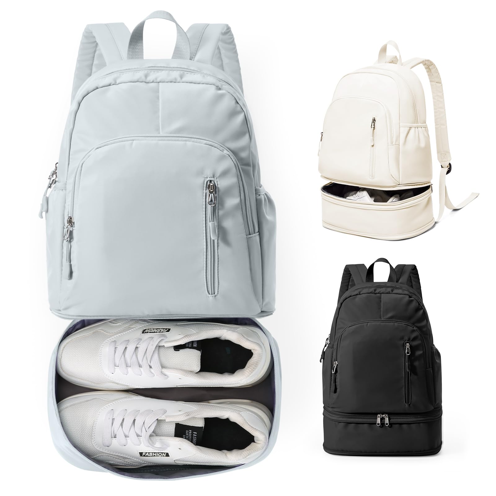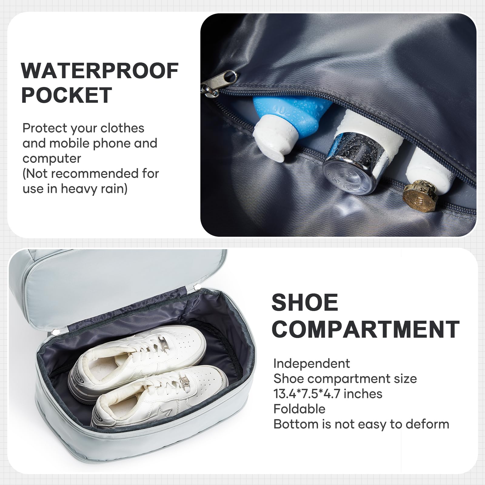 - SPECIAL COMPARTMENT】The bottom of the fitness backpack provides a separate compartment for storing a pair of shoes, which is convenient for you to use after changing your shoes, and the expandable travel backpack interior features wet and dry pockets.