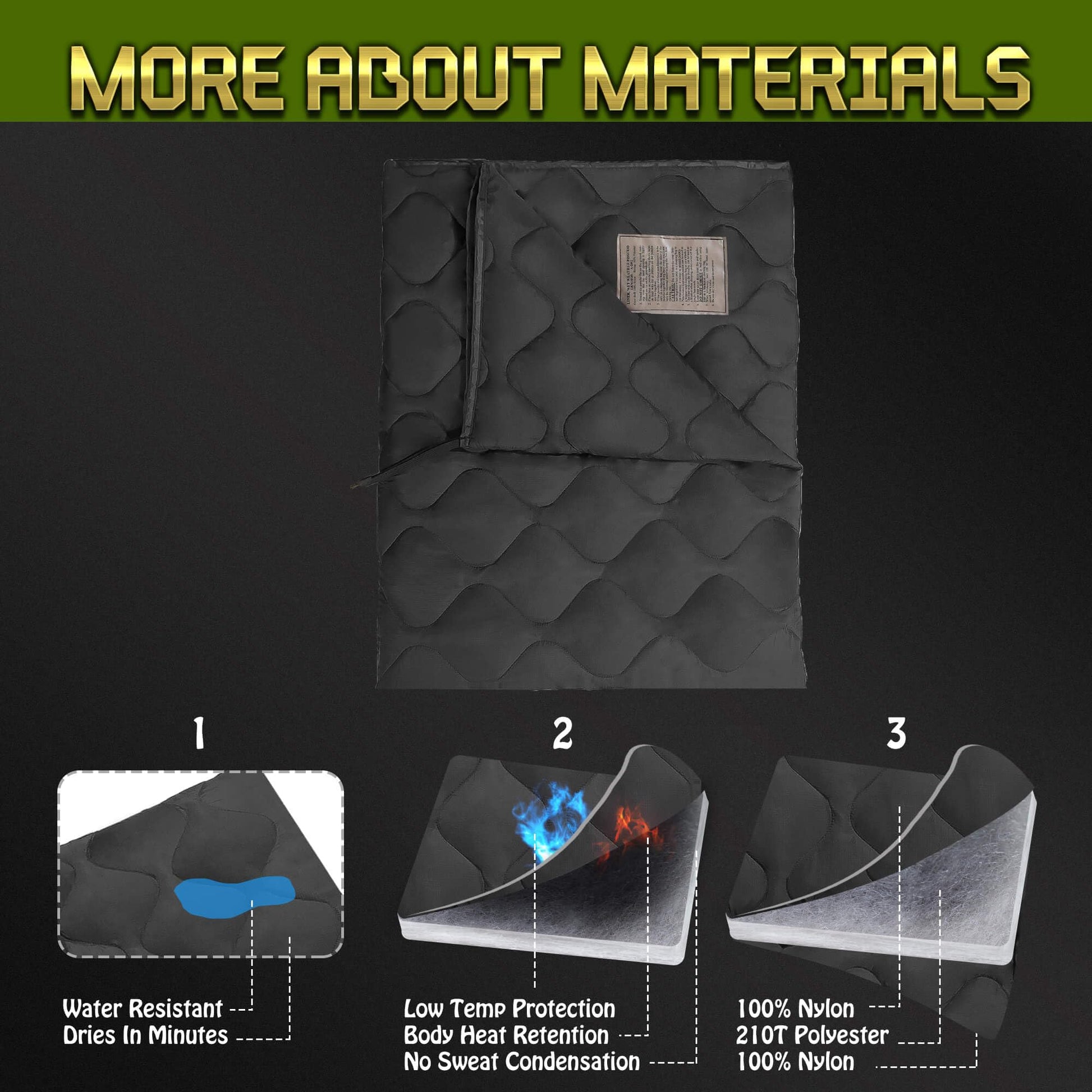 - QUICK DRYING & WATER-RESISTANT: With its water-resistant properties, this military woobie blanket is perfect for keeping you dry in wet conditions. The quilted stitching further enhances its weather resistance, while the blanket’s quick-drying feature ensures you stay dry and comfortable when exposed to moisture.