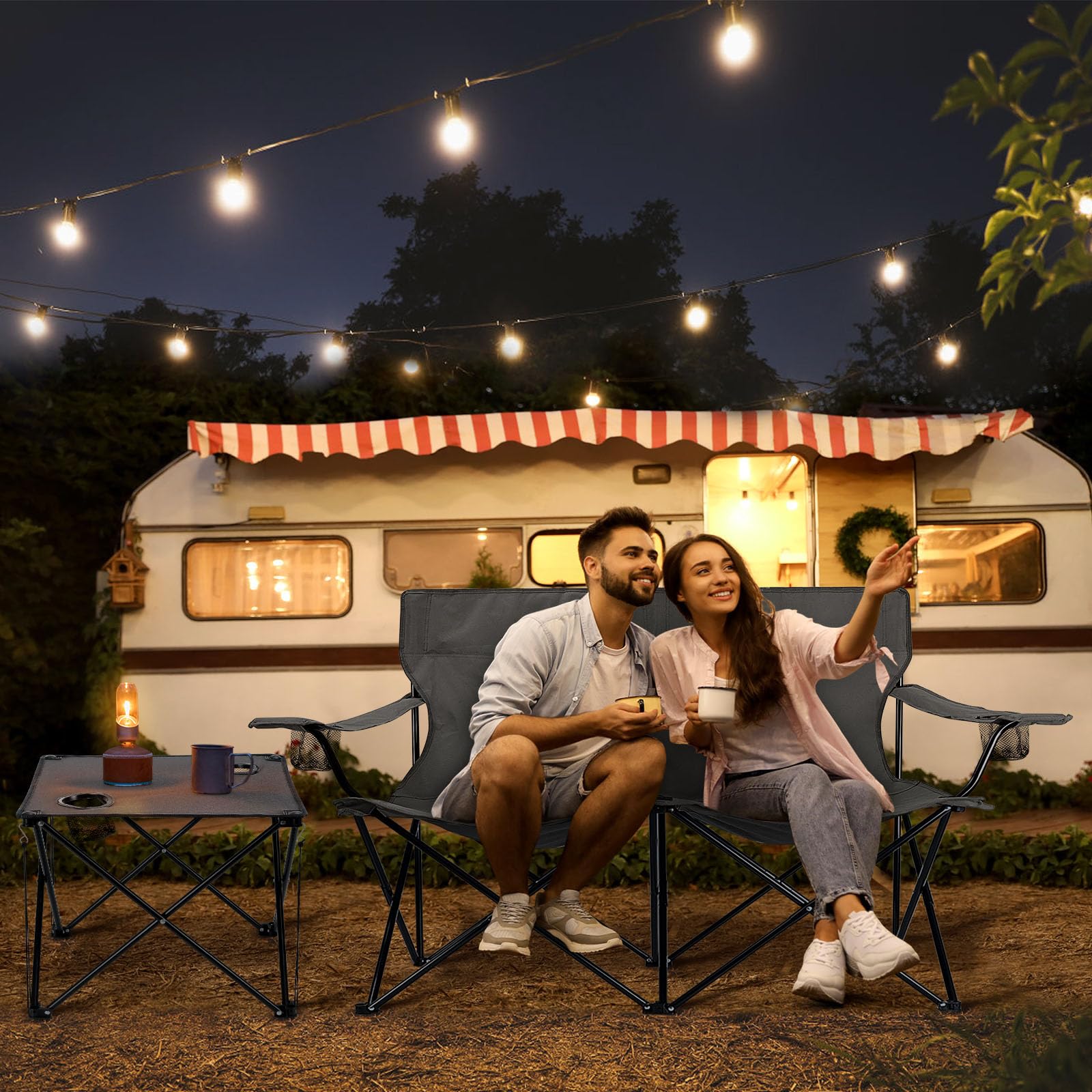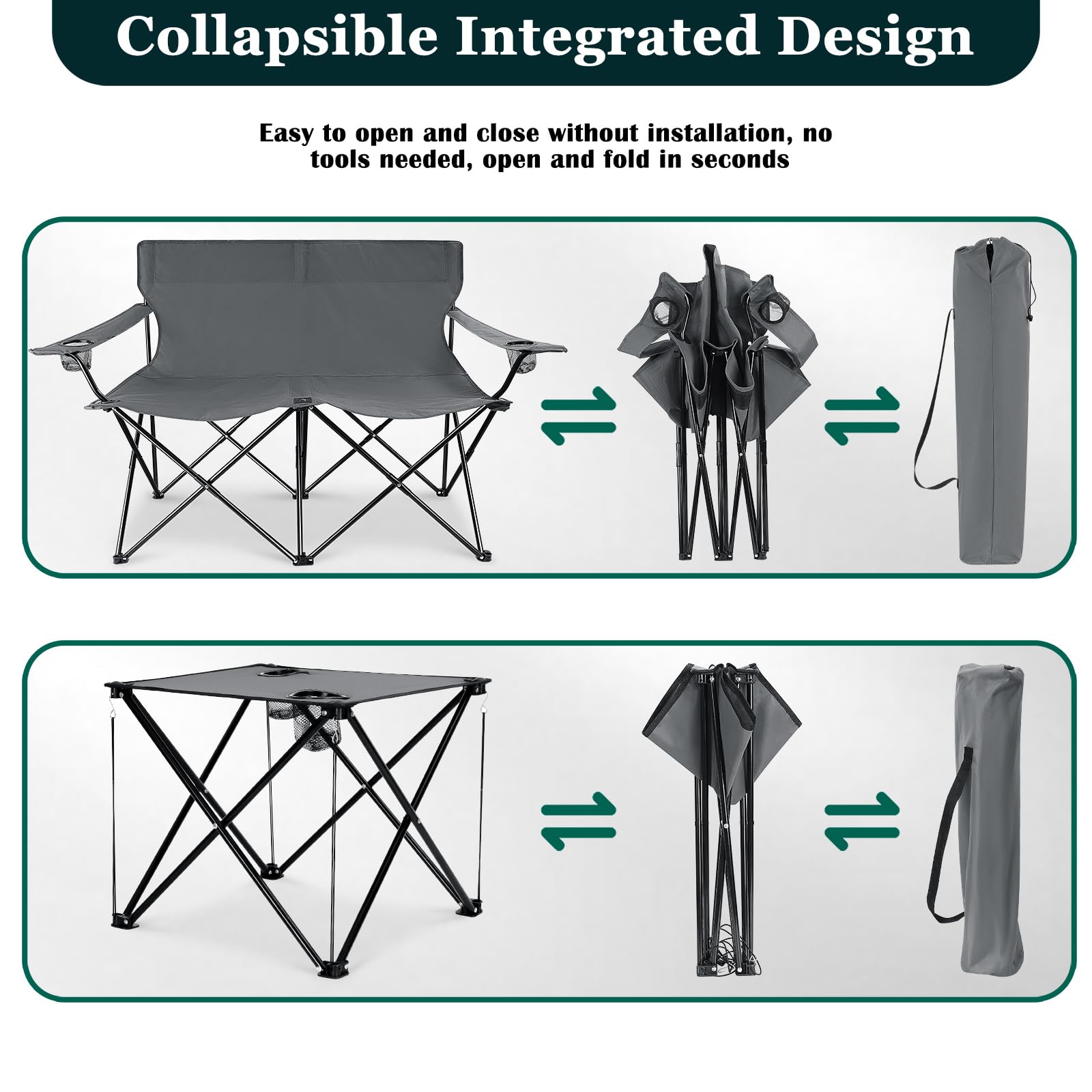 - Lightweight and Portable: designed for on-the-go convenience, our loveseat camping chair and folding table features an innovative folding design, with a portable carrying bag included, it effortlessly folds down for easy storage and transport, making it ideal for outdoor concerts, camping trips, picnics and more