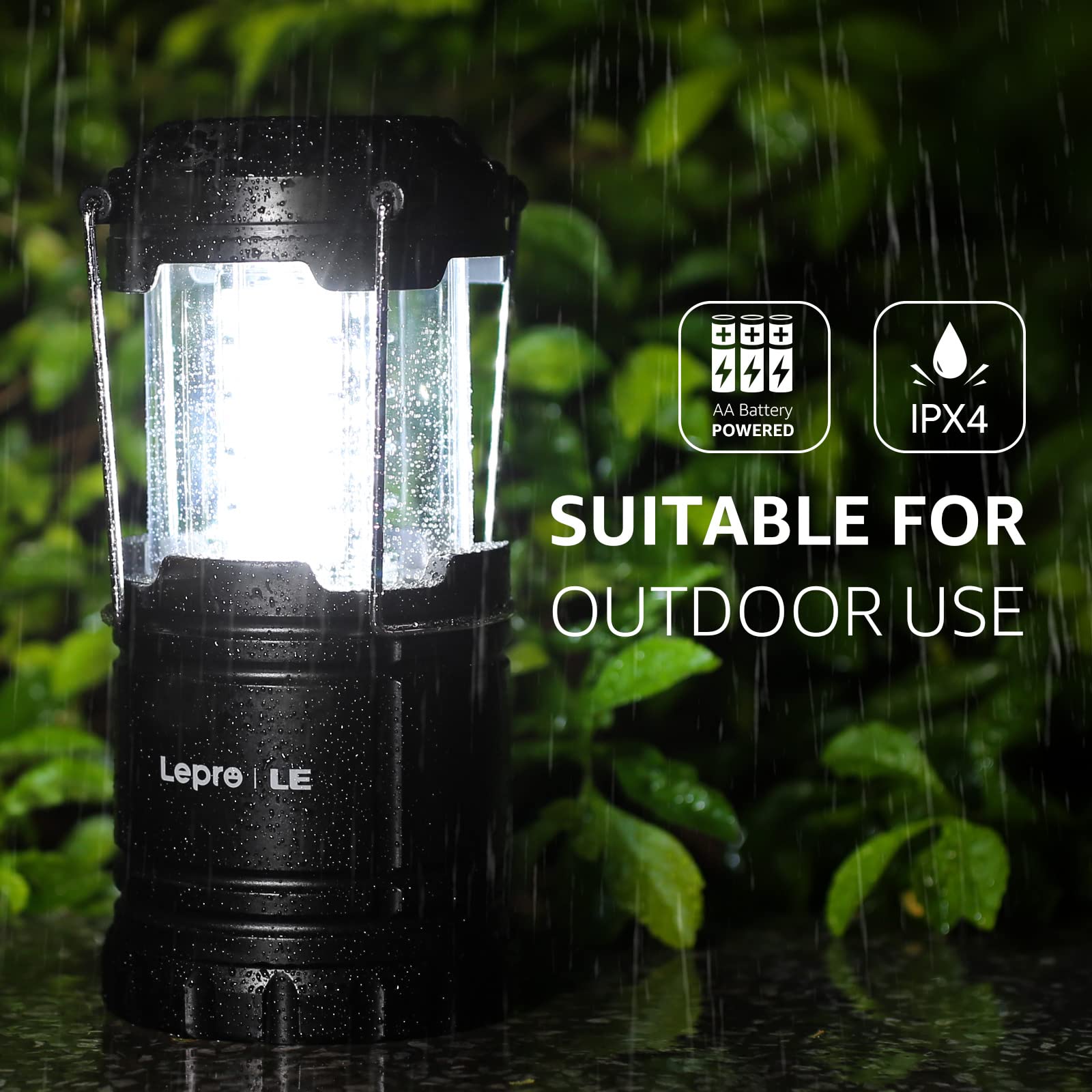 Details: Lepro Bundle - LED Camping Lanterns Battery Powered, Collapsible, IPX4 Water Resistant, 4 Packs & PR320019-2 Super Bright Head lamp with Motion Sensor, 230° Wide Beam & Adjustable