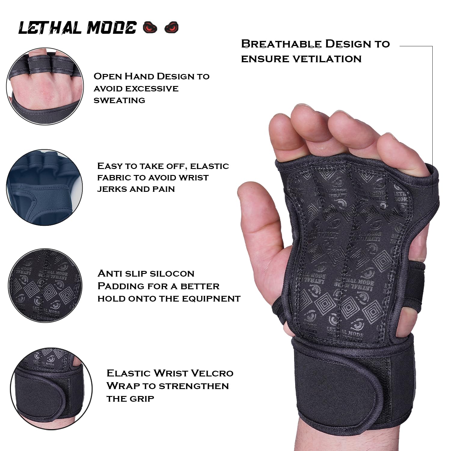 - Breathable, Comfortable Design: Keep your hands cool and dry with Lethal Mode workout gloves. The lightweight, breathable design ensures maximum comfort and flexibility during your training, ensuring you stay focused.