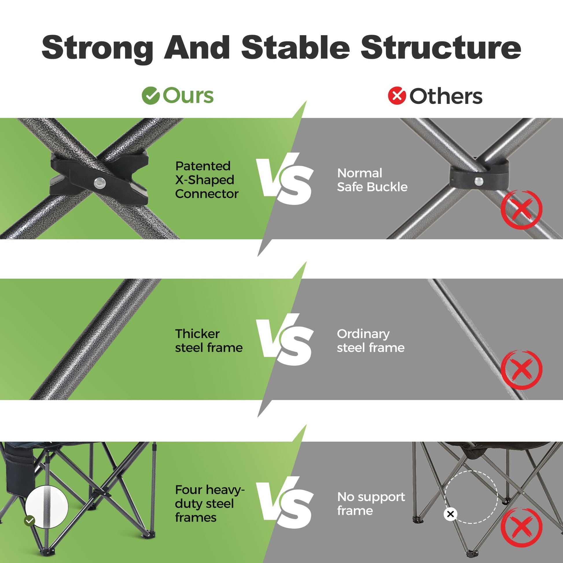 LET'S CAMP Folding Camping Chair Oversized Heavy Duty Padded Outdoor Chair with Cup Holder Storage and Cooler Bag, 450 LBS Weight Capacity, Thicken 600D Oxford,2 Pack