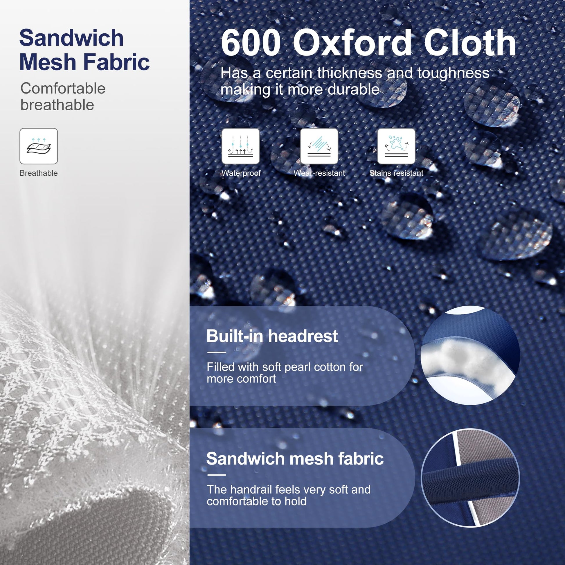 - Comfortable Design: We've added a comfy headrest that's thick and soft, so you can lean back and relax. The back and armrests are made from breathable, durable fabric with sandwich mesh padding, offering great comfort and rebound.
