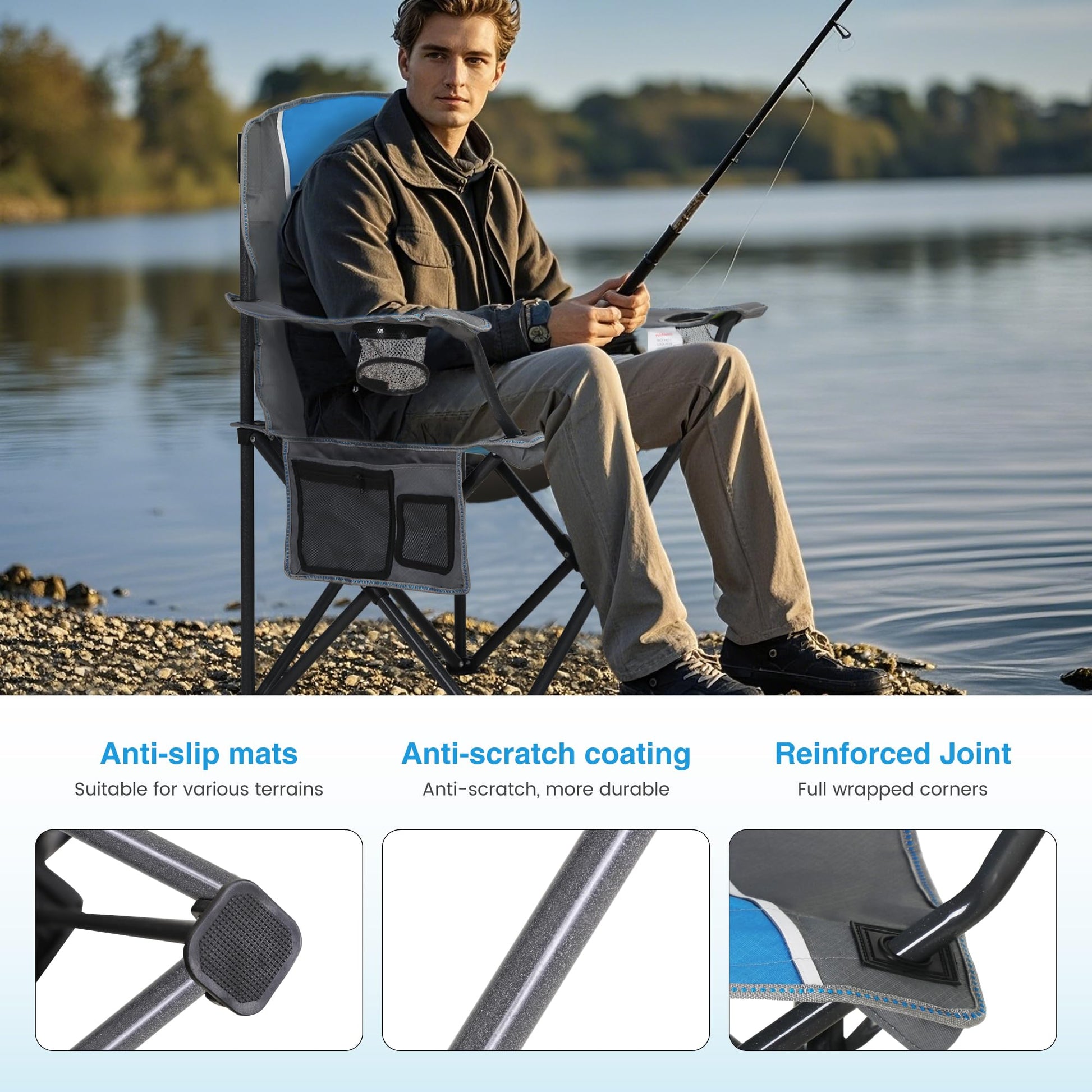 LET'S CAMP Oversized Outdoor Folding Camping Chair, 2 Pack Heavy Duty Arm Chairs with Cup Holder and Storage Bag, 350 LBS Weight Capacity, Blue