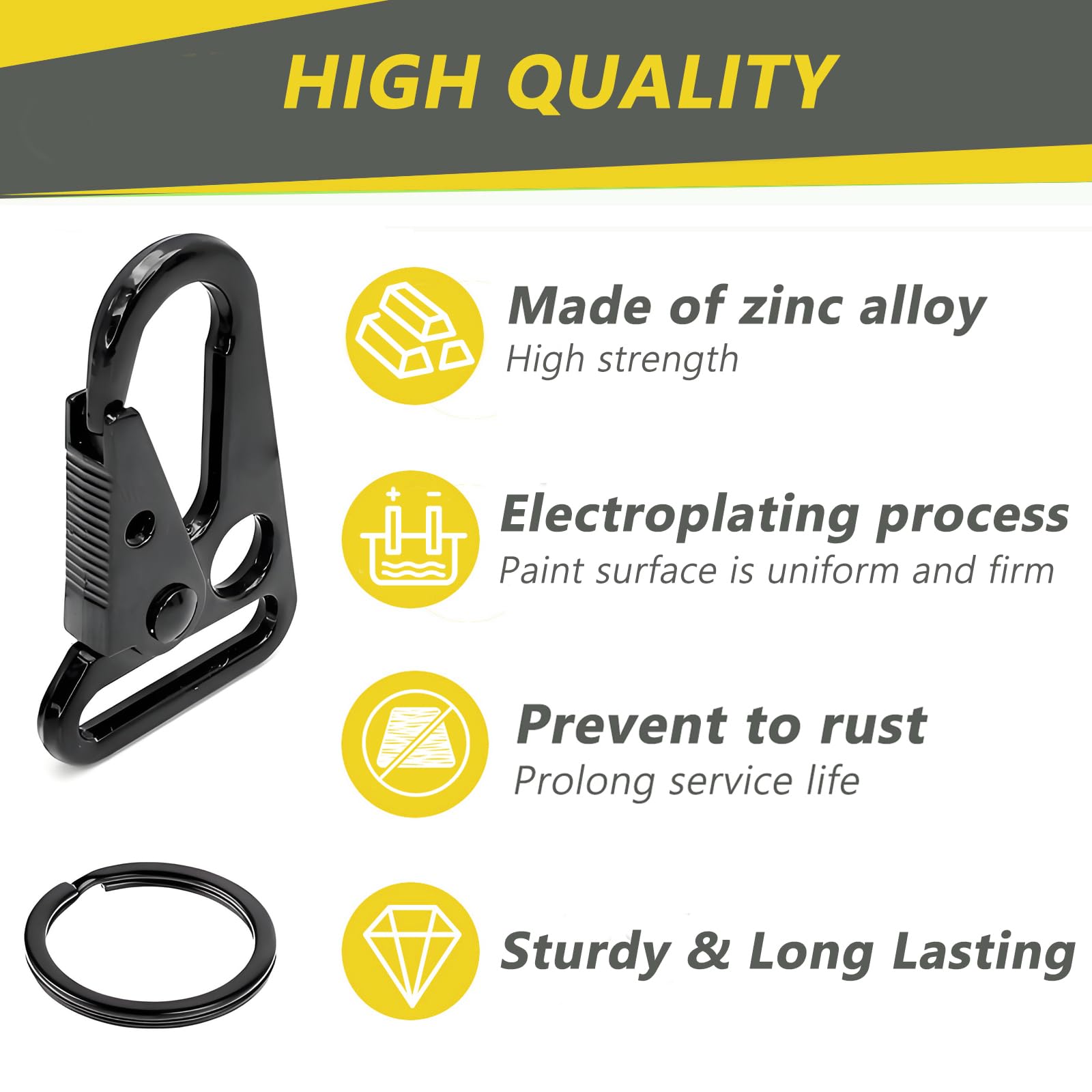 - Material :The Snap Hook and Key Ring made of high-quality zinc alloy with high strength, sturdy and durable. The smooth surface and no sharp or jagged edges is designed .