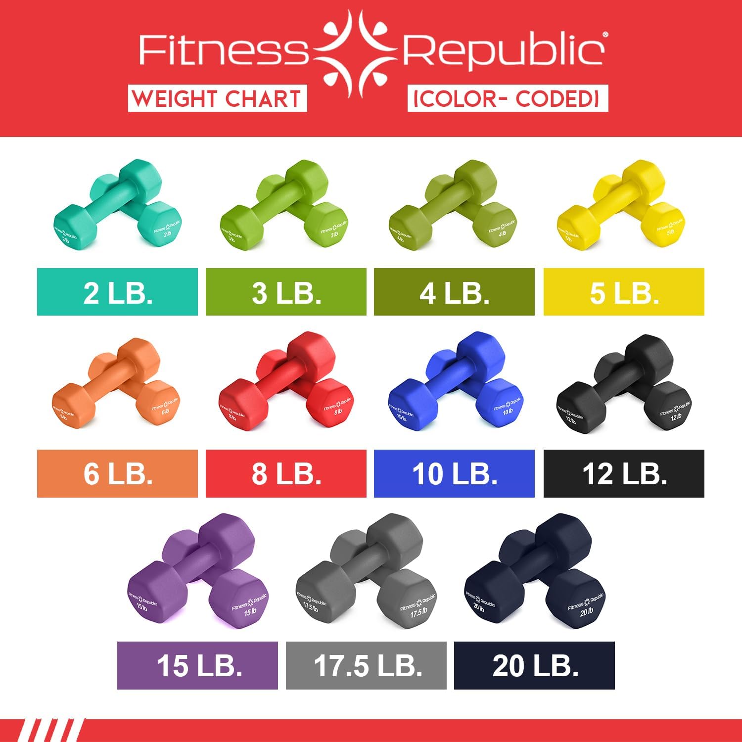 - Package includes a set of 2 Dumbbells that comes in 8LB Size and Red Color. High quality cast iron constructions of the dumbbells are considered an excellent choice for home gym needs