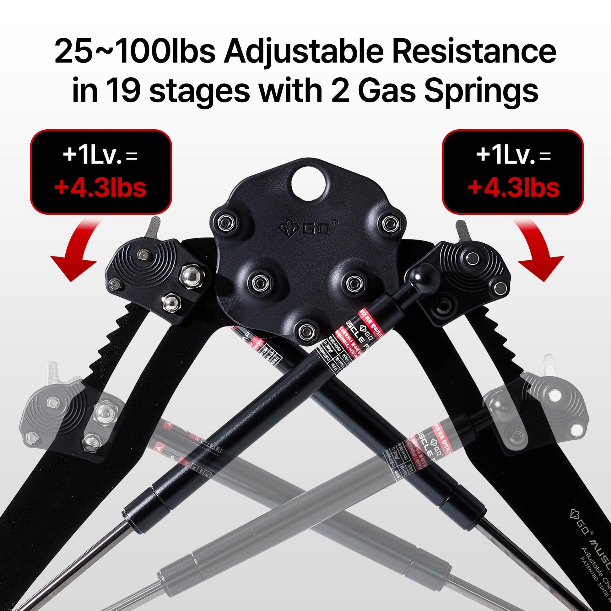 - [Adjustable Resistance (22-100 lbs)] To promote muscle growth, progressive overload is essential. With GD MUSCLE PUMP, you can easily adjust the resistance from 22 to 100 lbs in just 3 seconds. This enables you to effectively and gradually increase the intensity of your workouts, targeting specific muscle groups and adapting to your desired level of challenge.