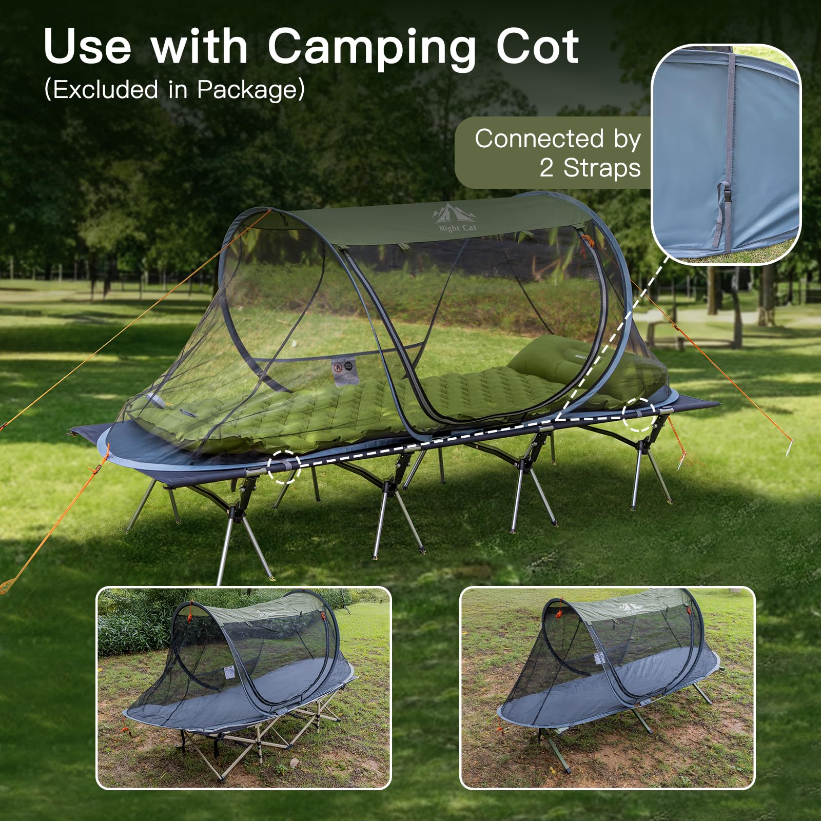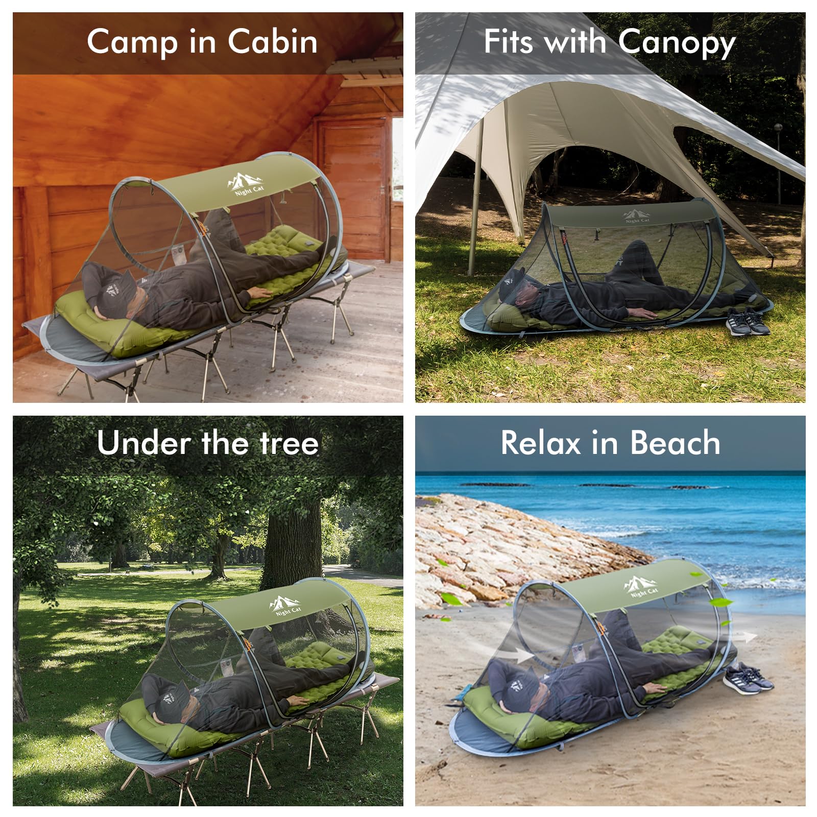 Night Cat Pop-up Mosquito Tent: 1 Person Camping Tent with Bug Screen Net Adults Fits with Camping Cot (Excluded)