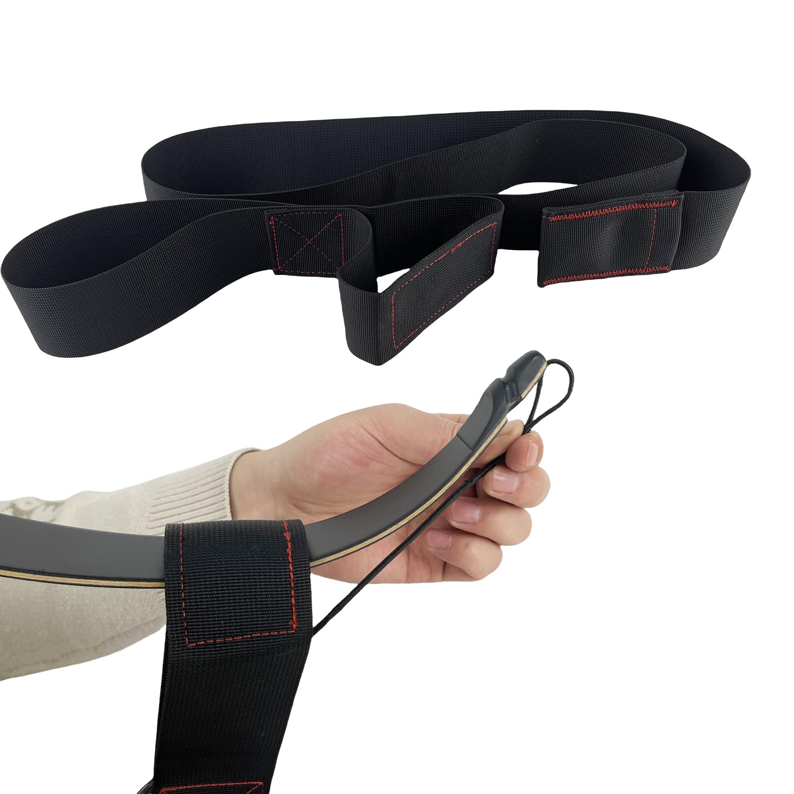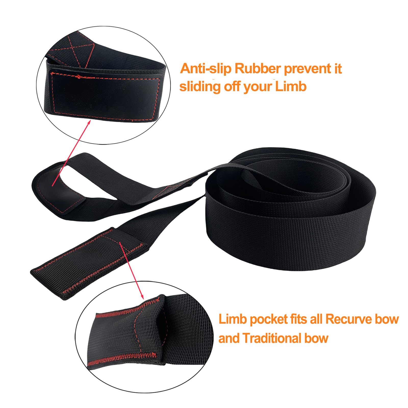 - High Quality Material: The archery bow stringer is made of high-quality nylon fabric, durable and hard-wearing. Length: 70inch; Width: 2inch.