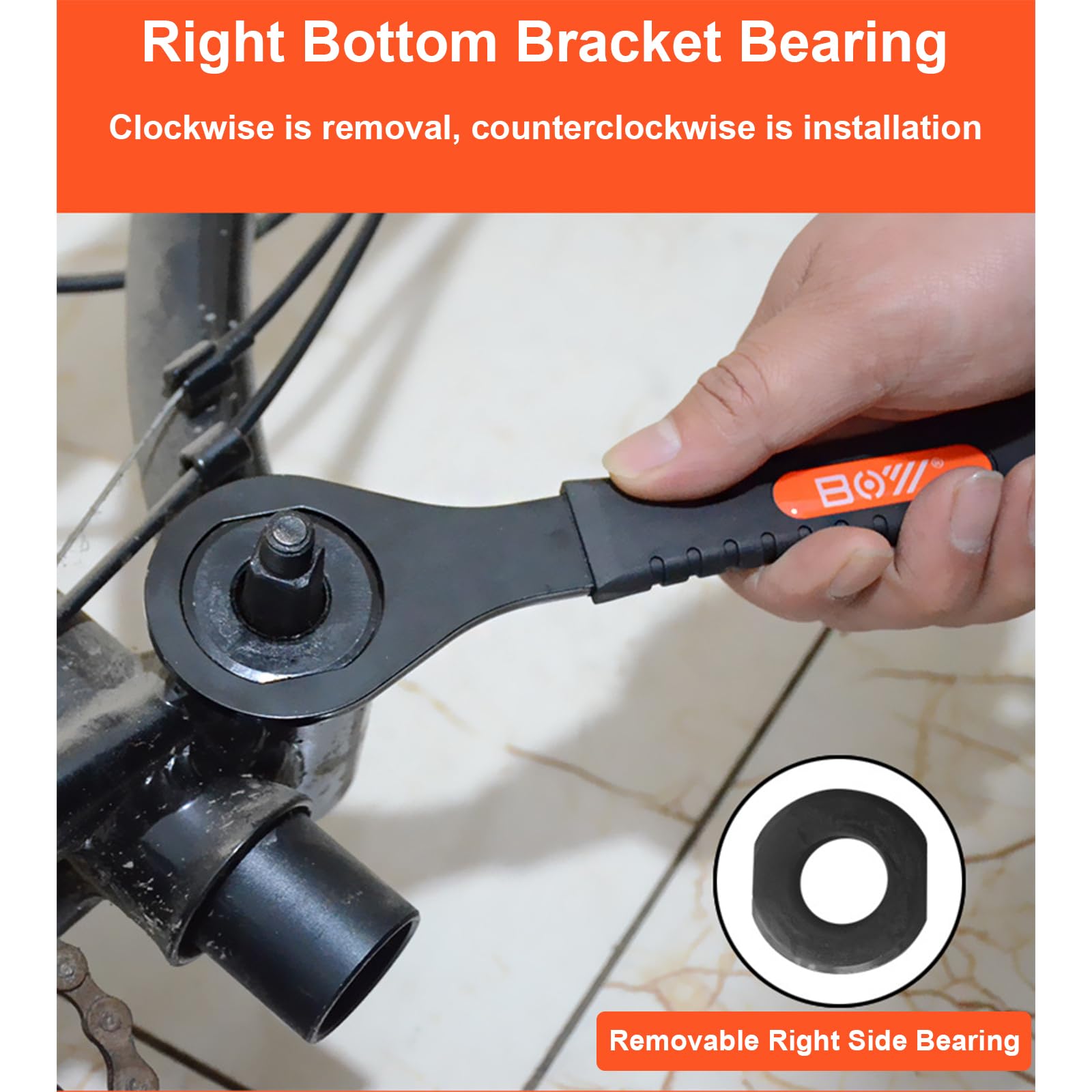 - PROFESSIONAL FUNCTION: This 36mm box end wrench is designed for removing raised bottom bracket cups on older bikes. Removable right side bottom bracket bearing (remove clockwise, install counterclockwise)