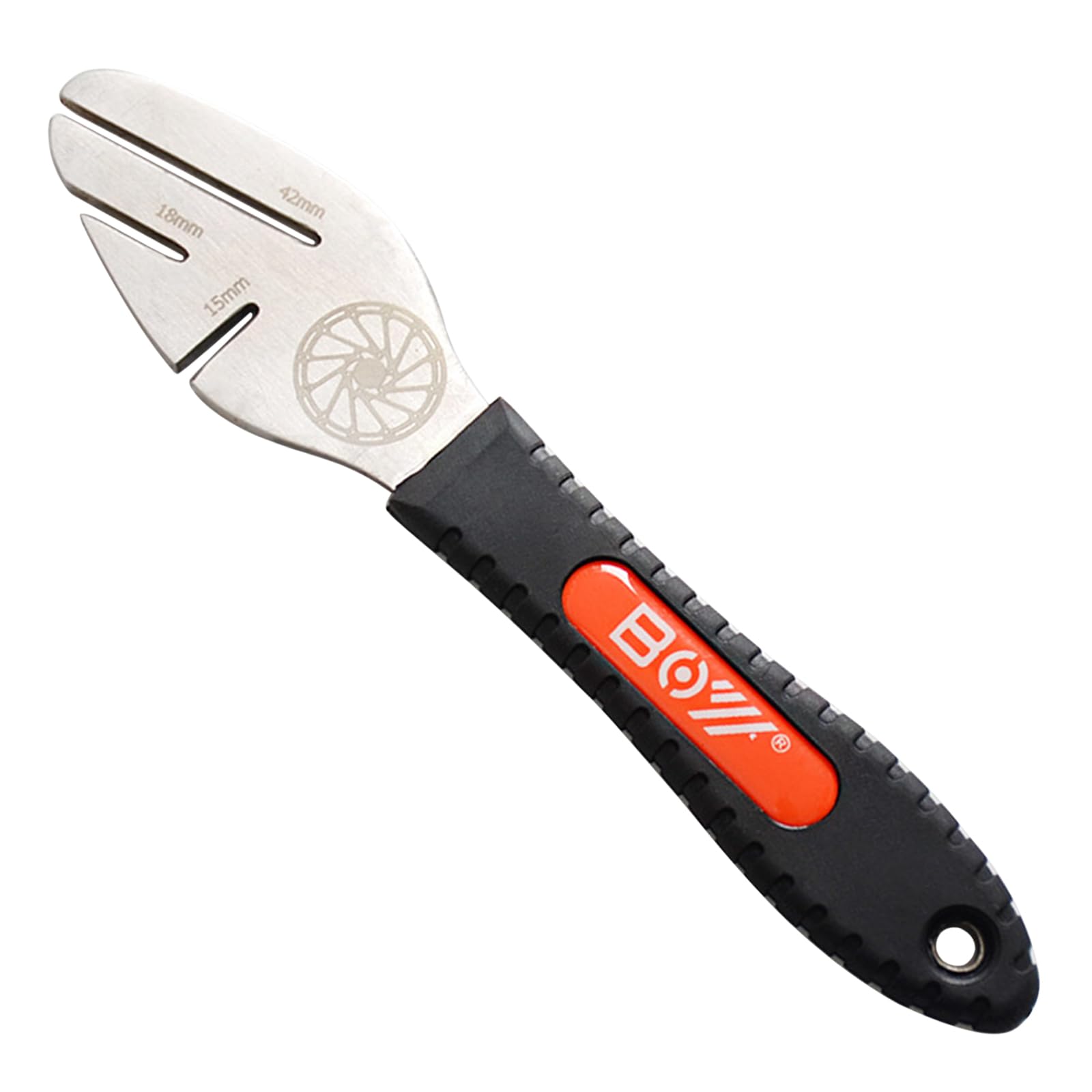 - MULTI-SLOT DESIGN: Bicycle disc brake rotor adjusting wrench has 3 different slot depths (15mm, 18mm, 42mm), which can be sized from different angles