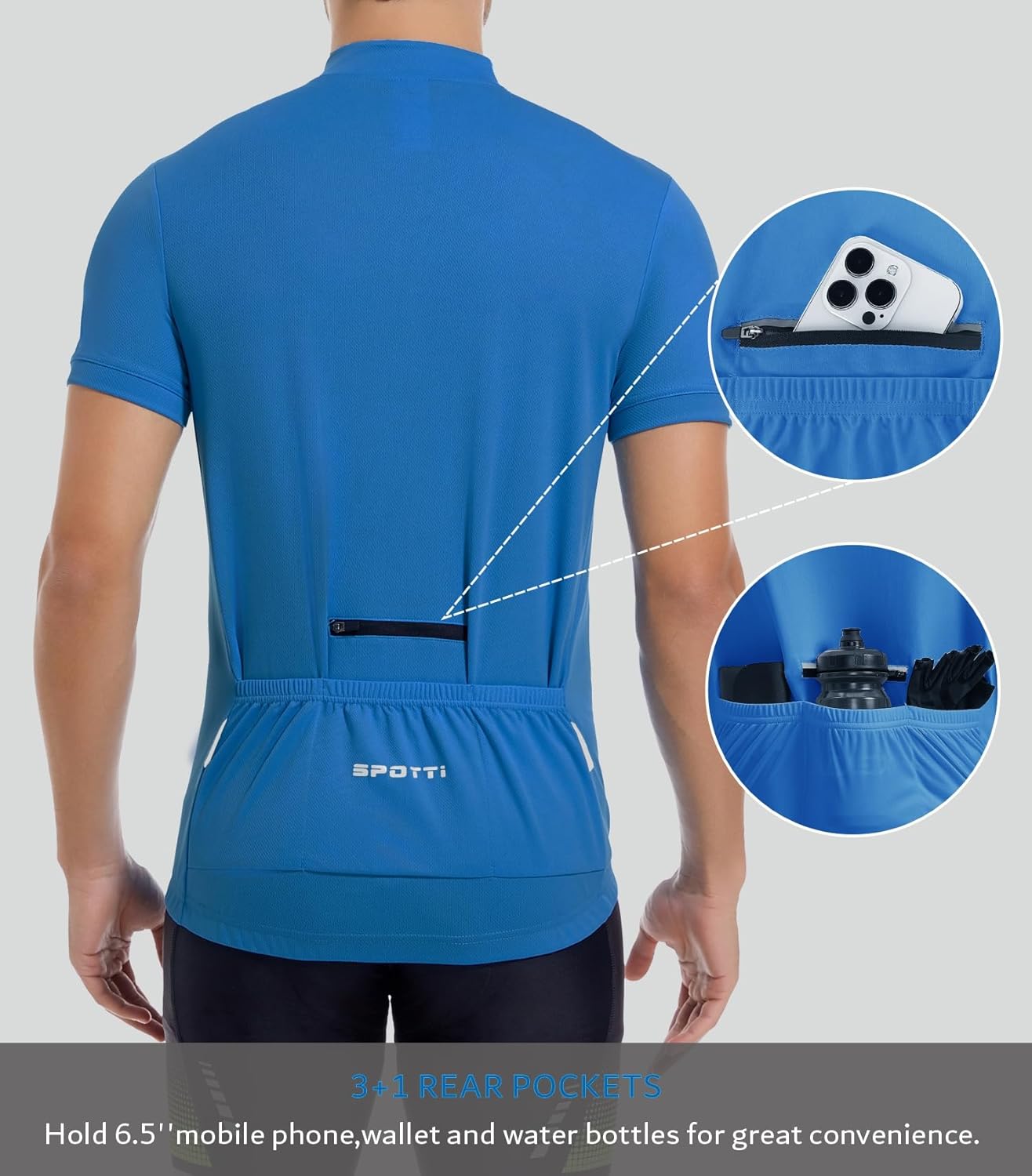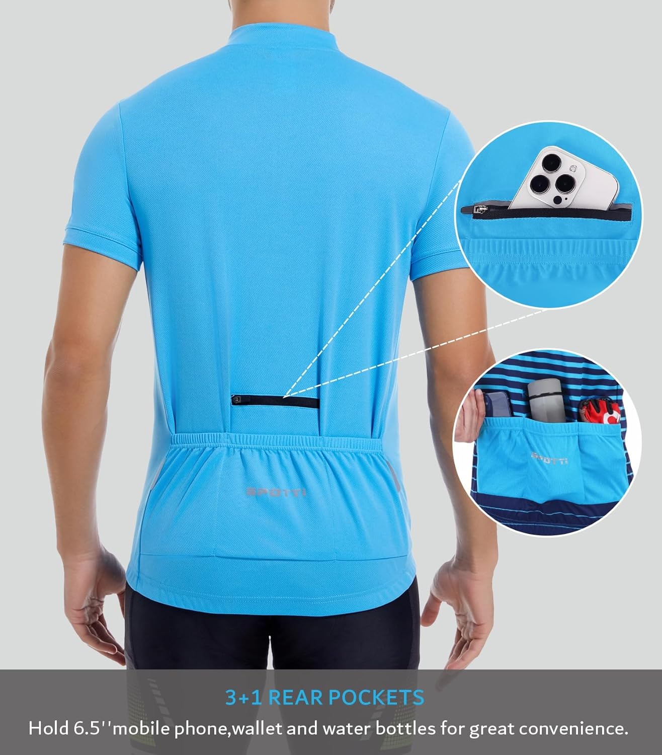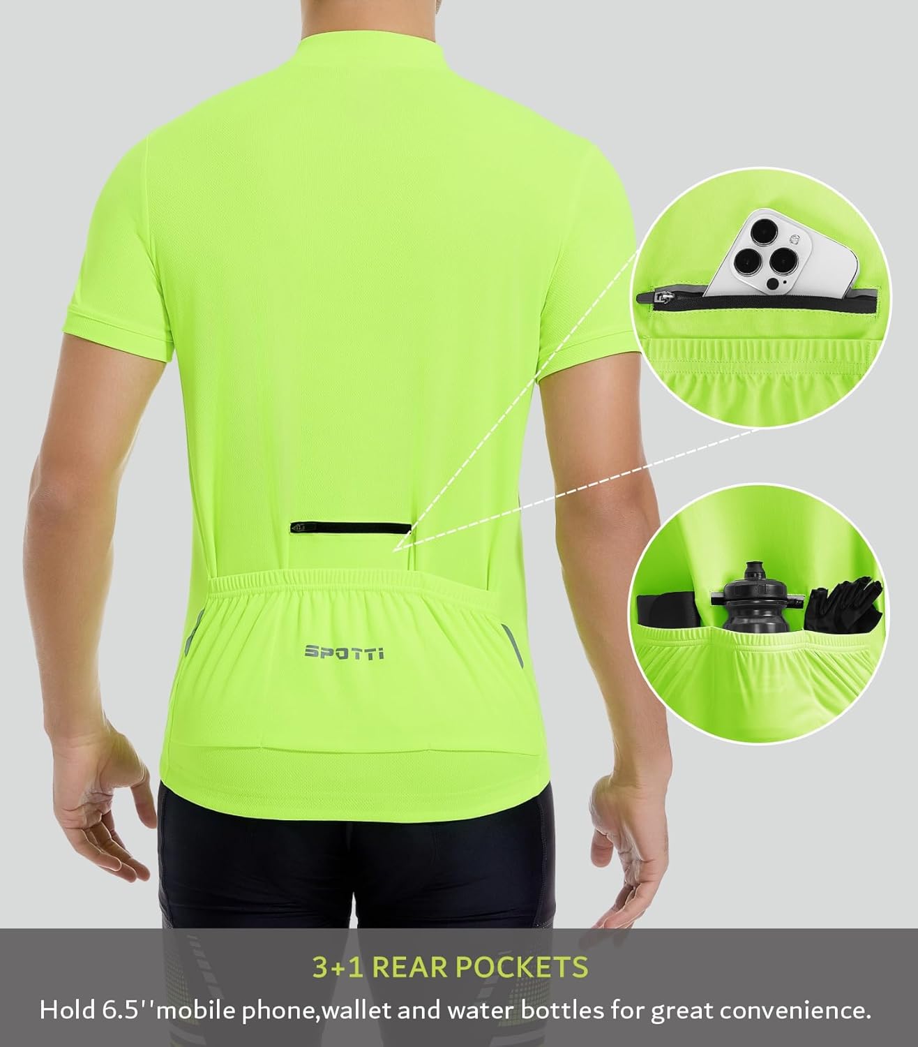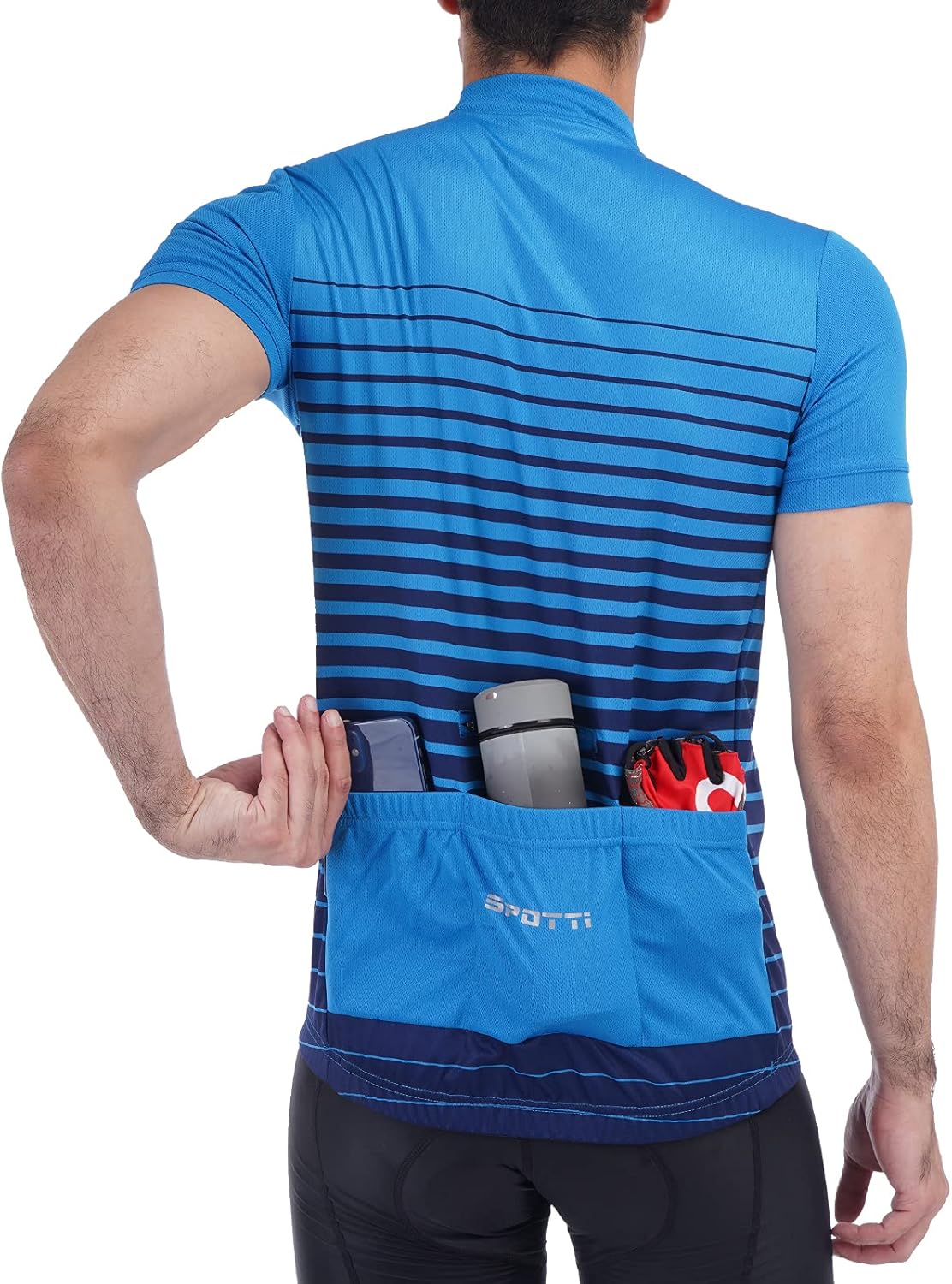 Spotti Men's Cycling Bike Jersey Short Sleeve with 3 Rear Pockets- Moisture Wicking, Breathable, Quick Dry Biking Shirt