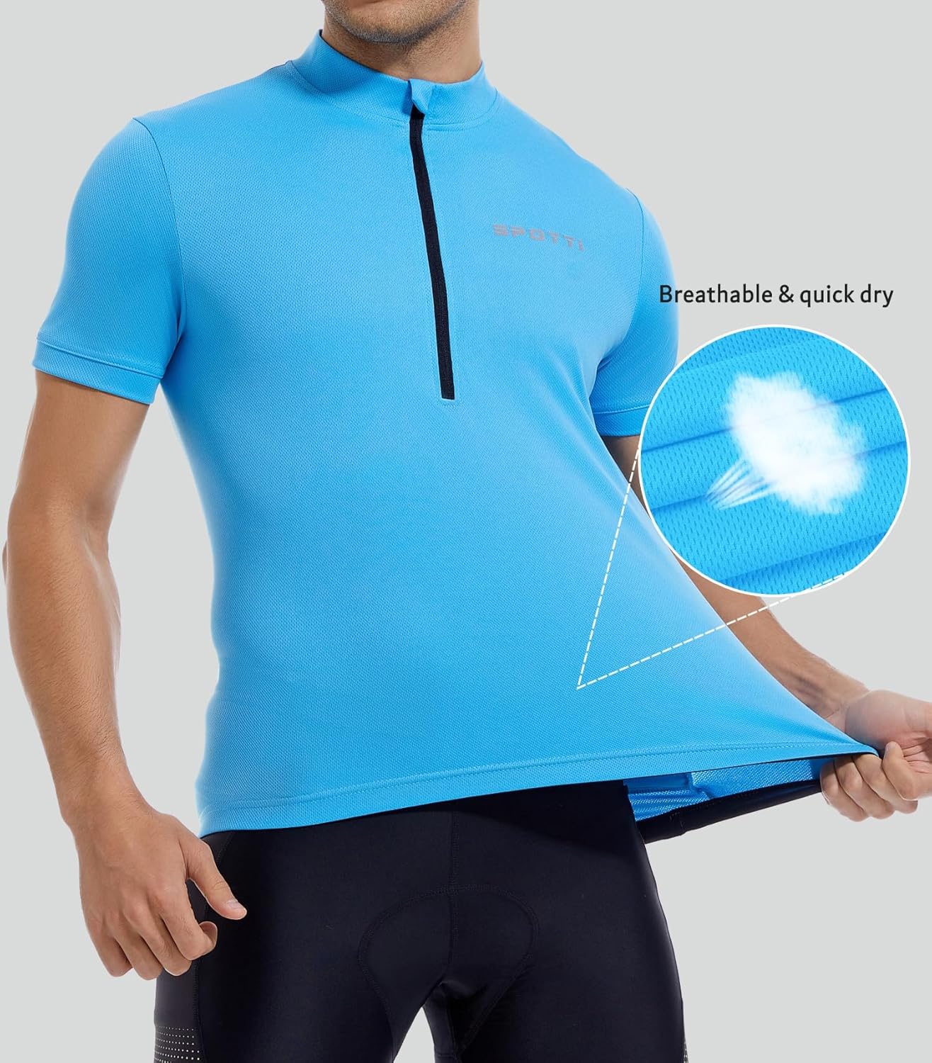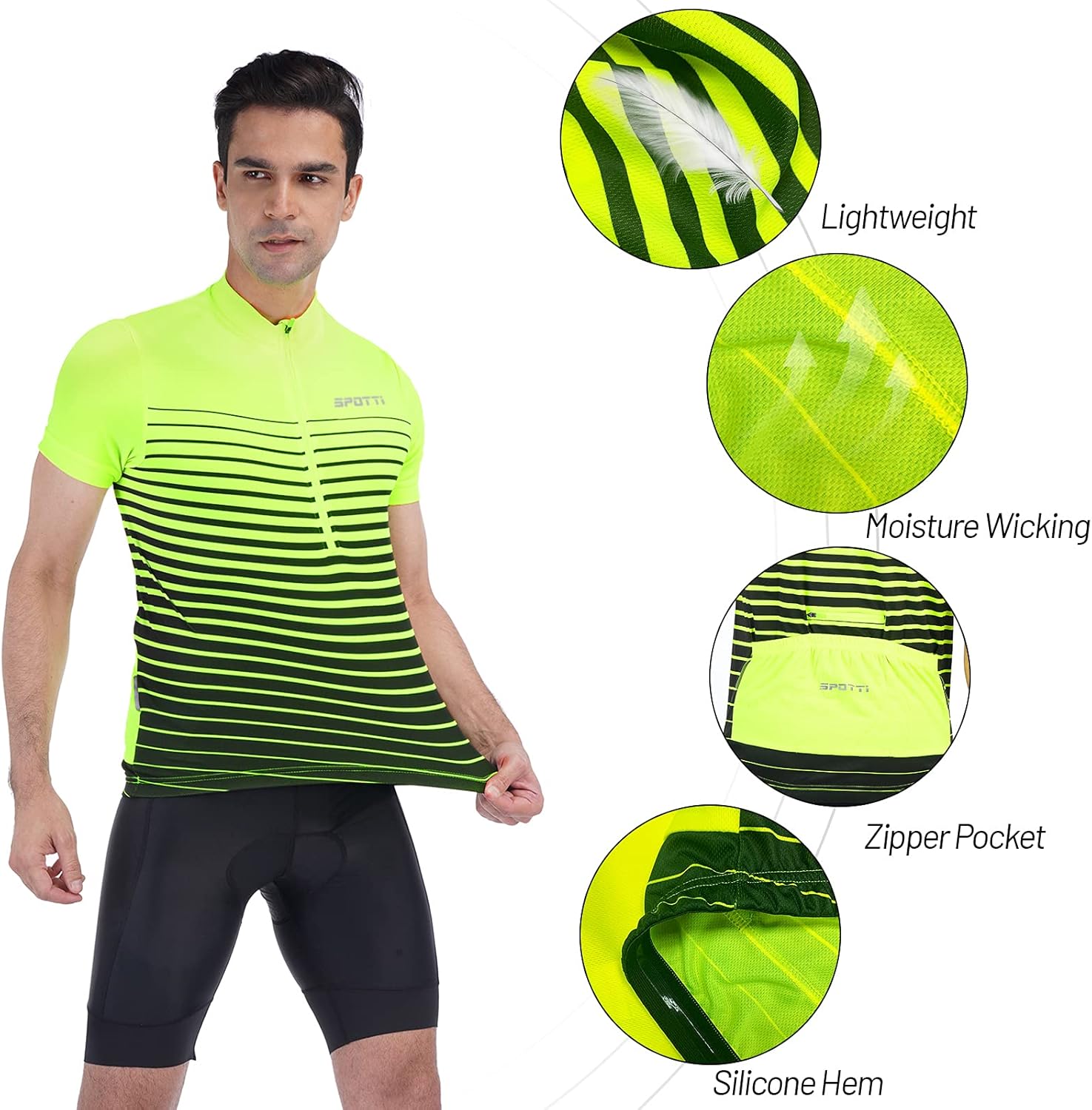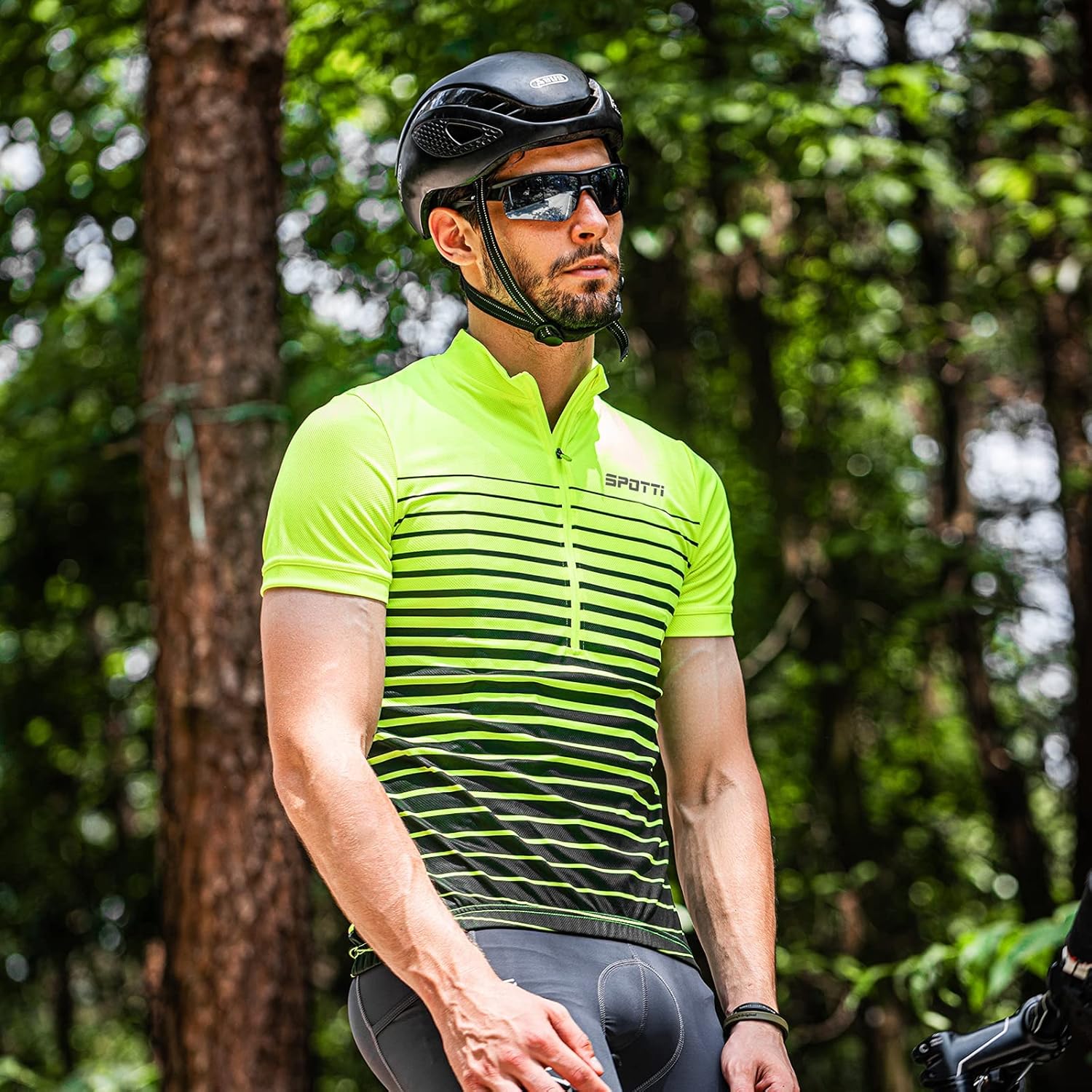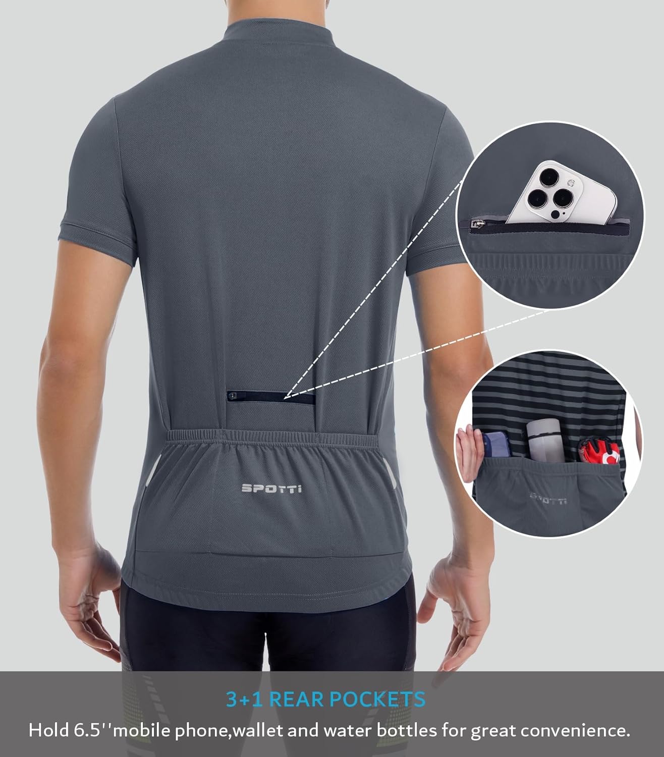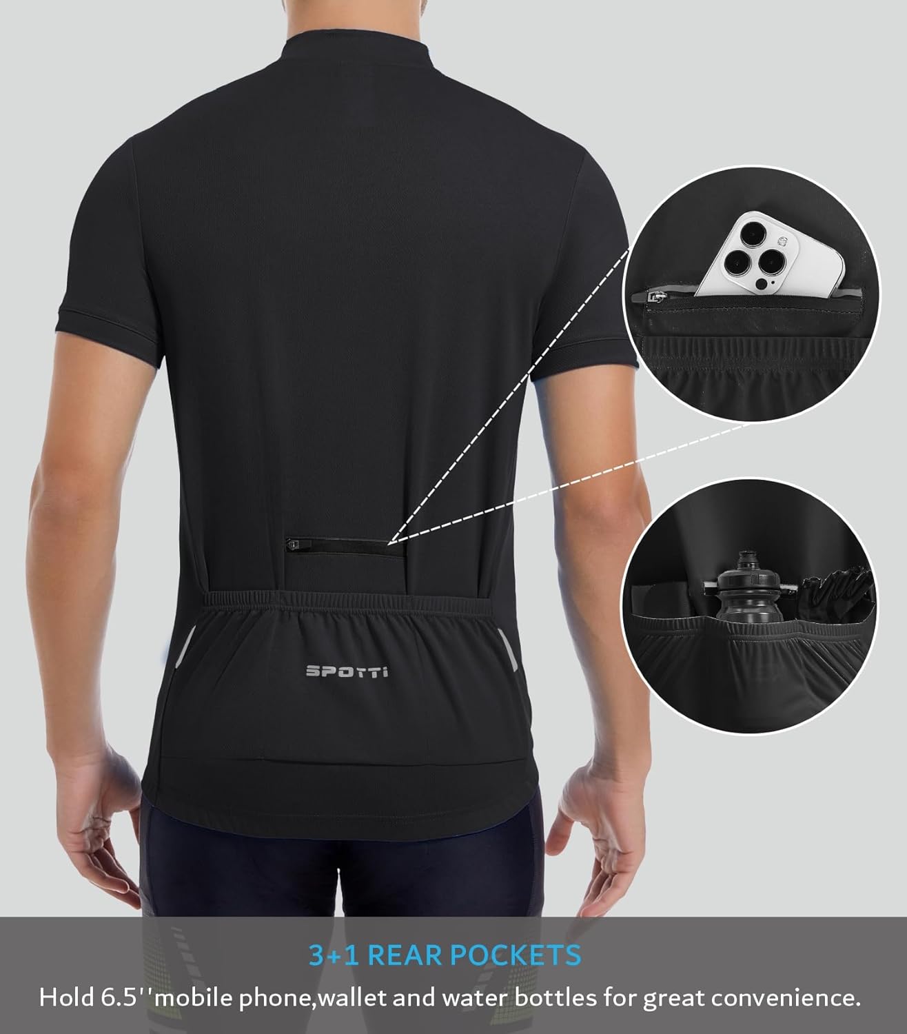 Spotti Men's Cycling Bike Jersey Short Sleeve with 3 Rear Pockets- Moisture Wicking, Breathable, Quick Dry Biking Shirt