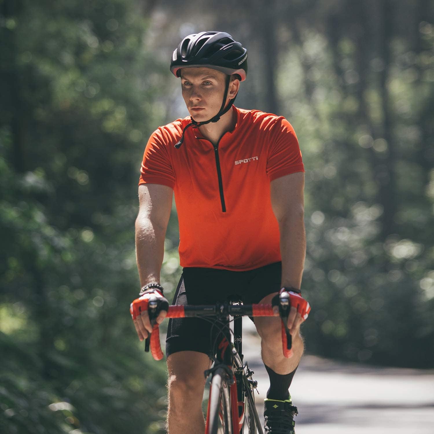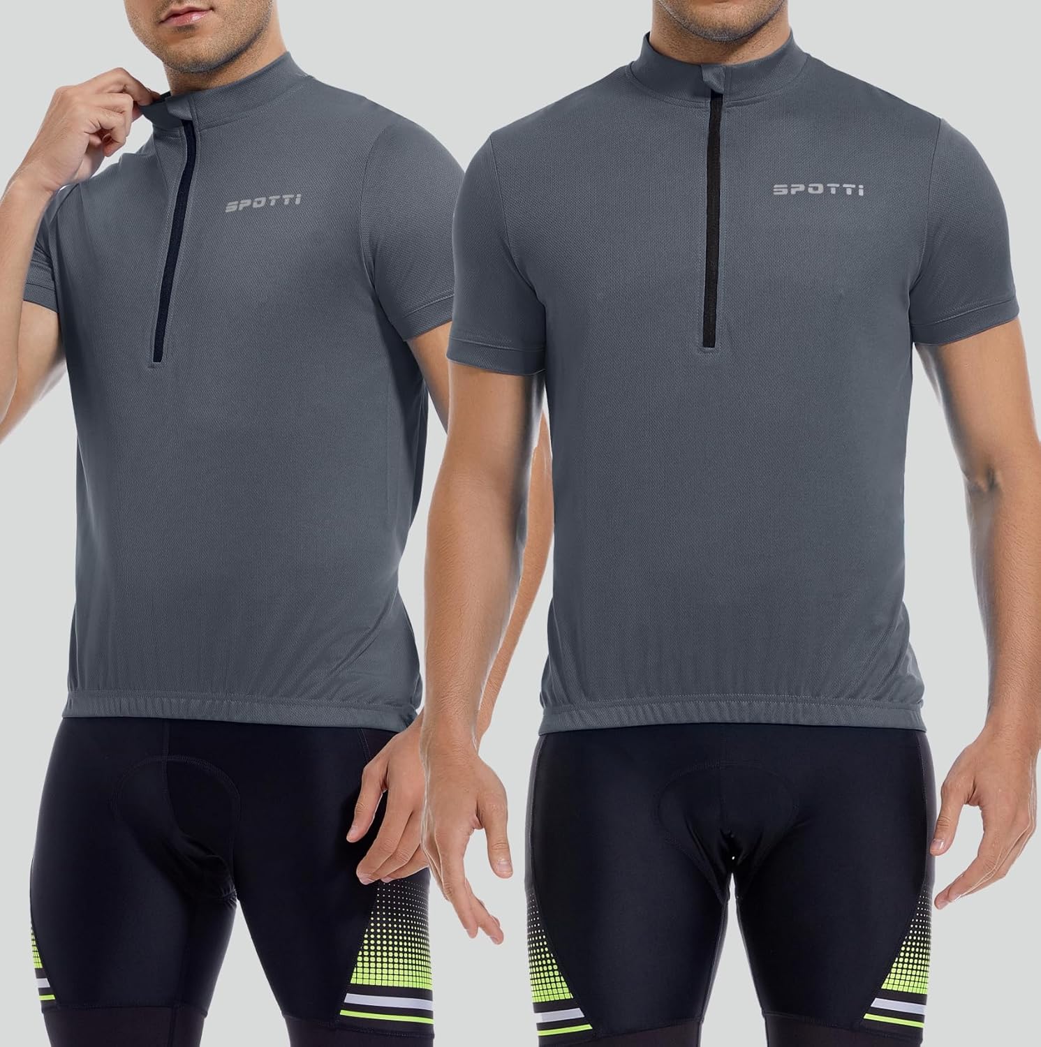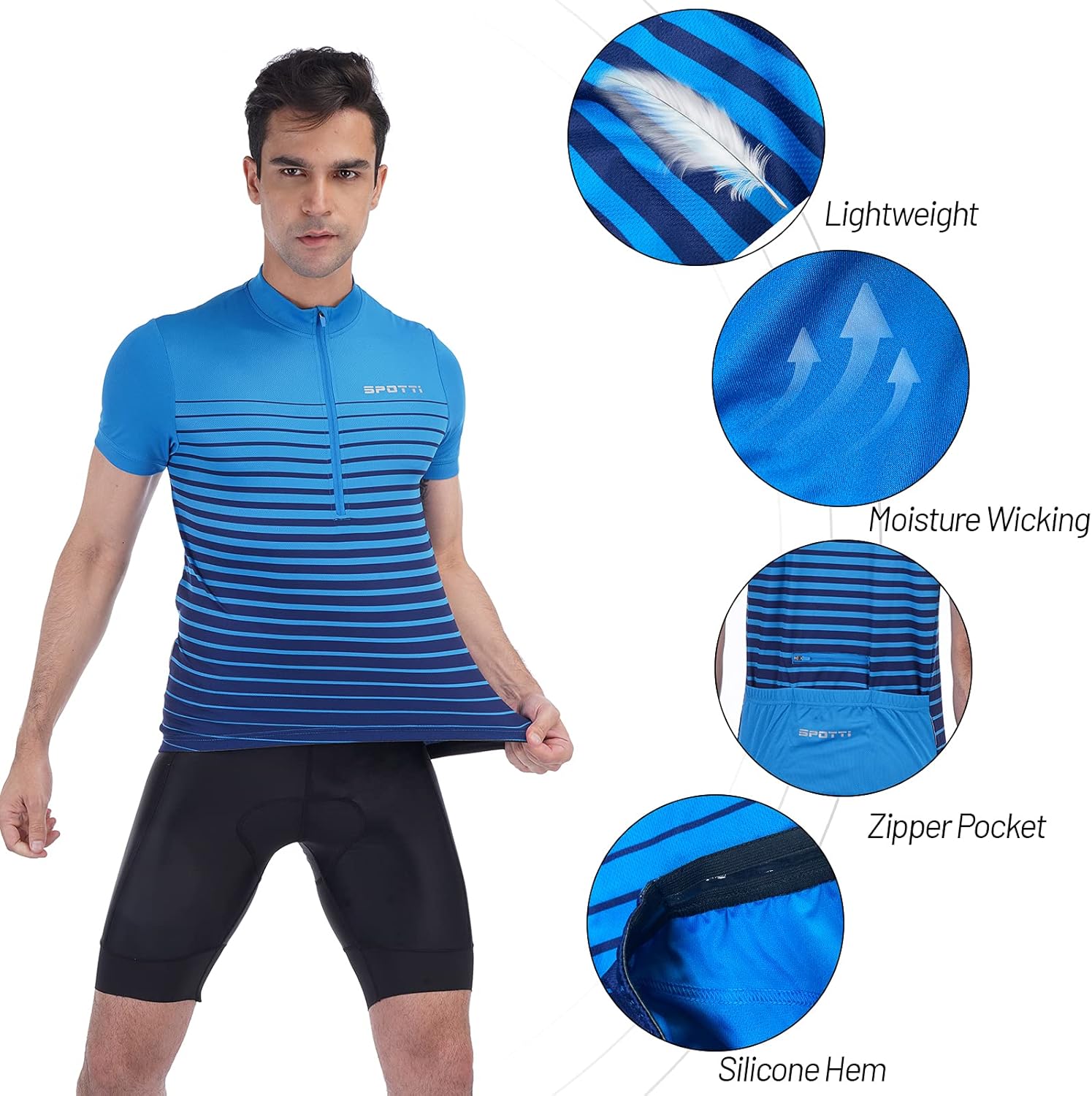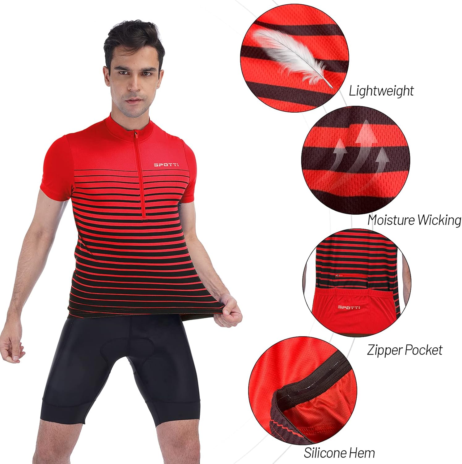 Spotti Men's Cycling Bike Jersey Short Sleeve with 3 Rear Pockets- Moisture Wicking, Breathable, Quick Dry Biking Shirt