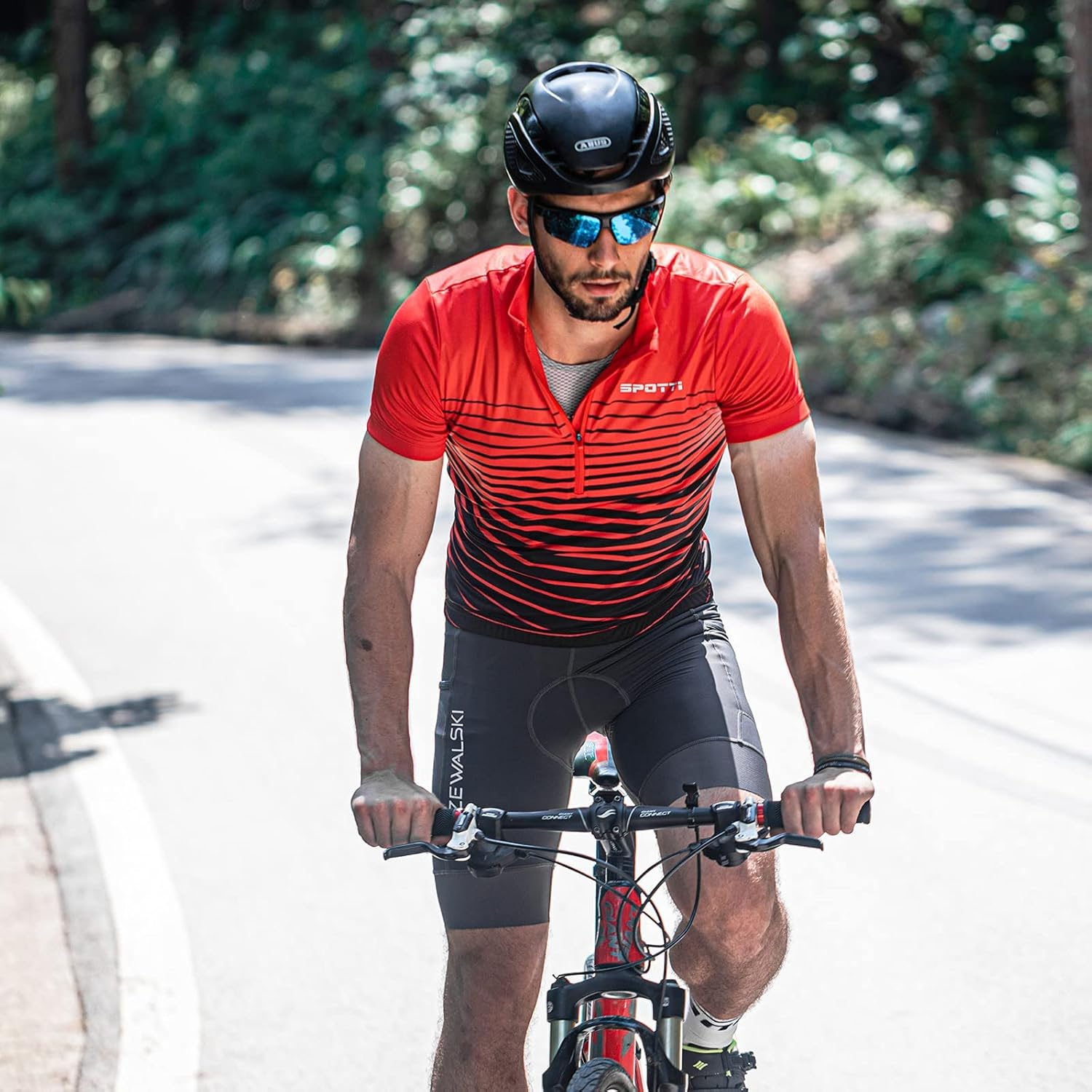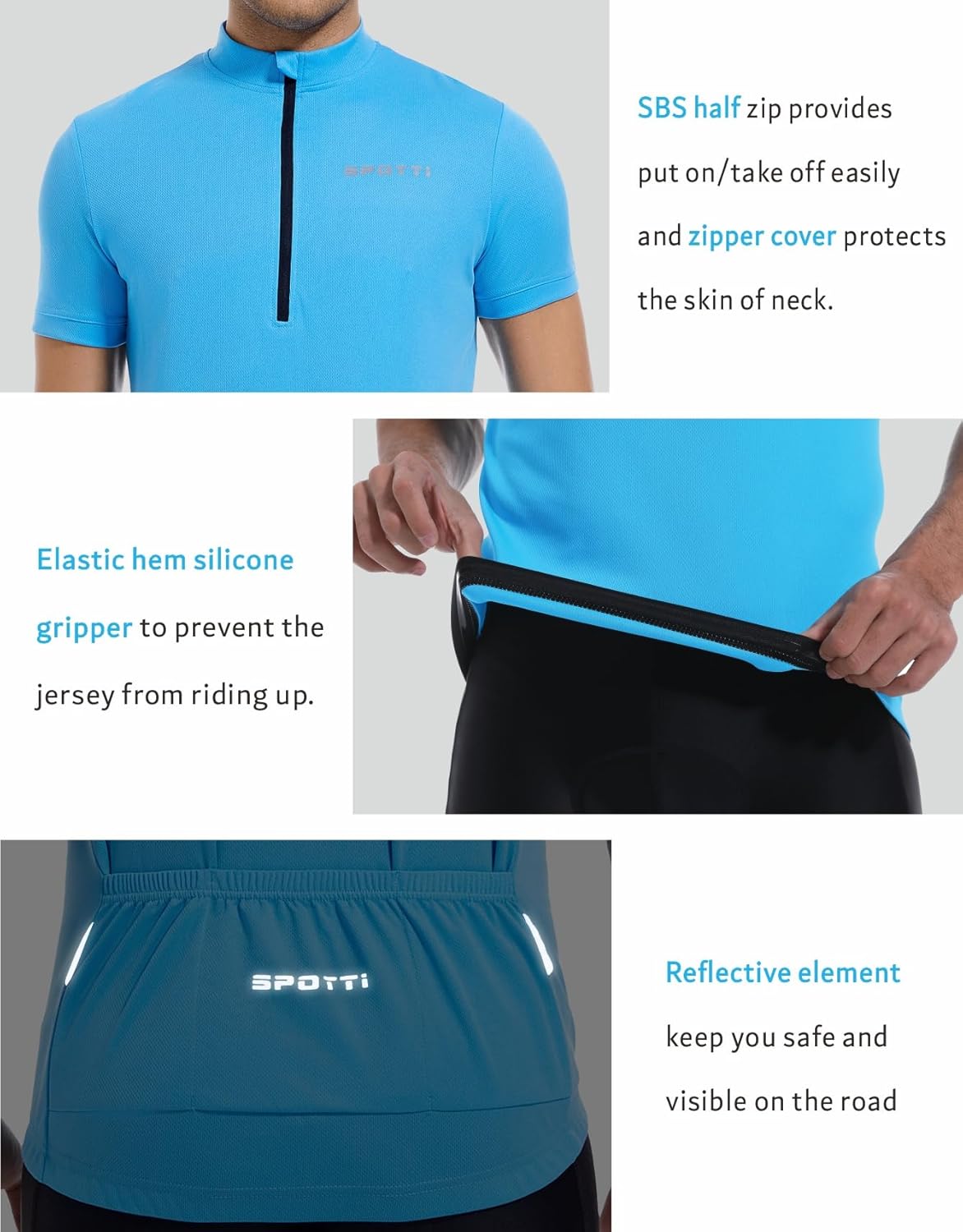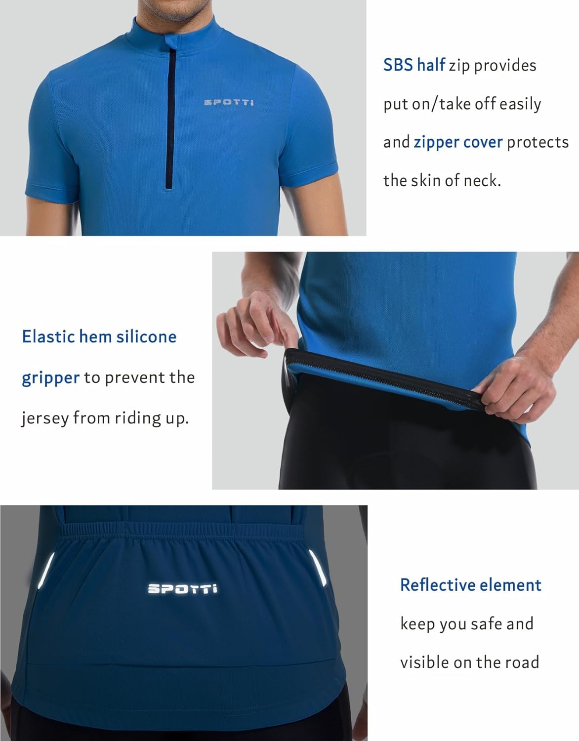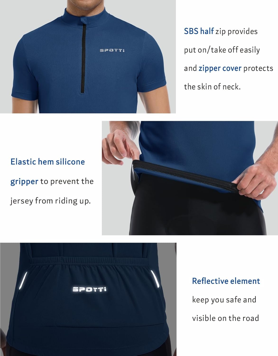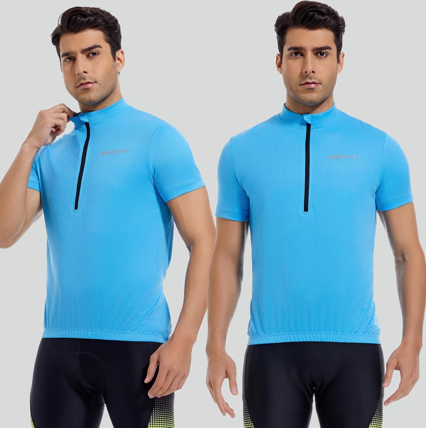 Spotti Men's Cycling Bike Jersey Short Sleeve with 3 Rear Pockets- Moisture Wicking, Breathable, Quick Dry Biking Shirt