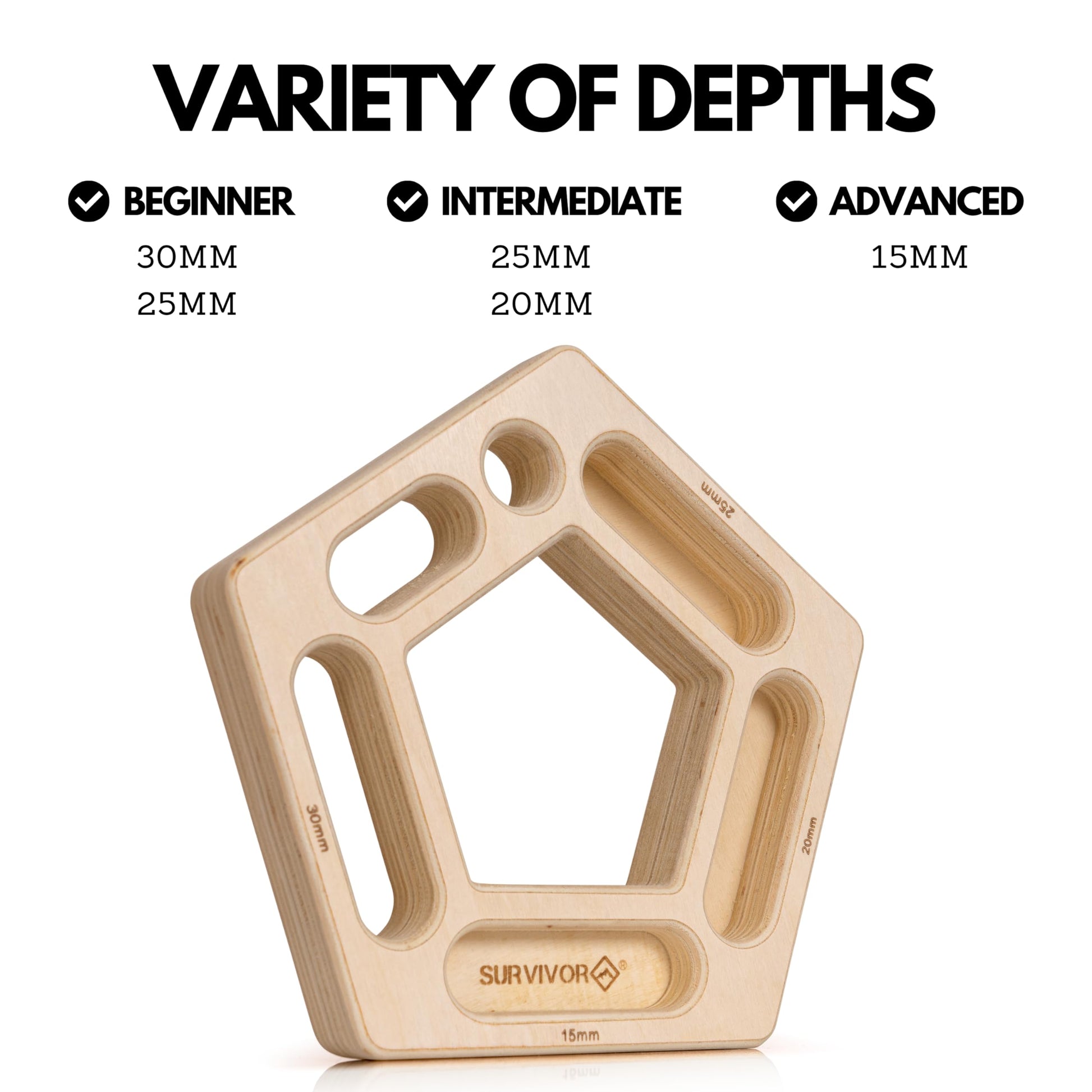 SURVIVOR Hangboard - Rock Climbing & Bouldering Training Board - Fingerboard for Hanging & Climbing Practice - Pull Up Holds for Increased Finger & Forearm Grip Strength (Pentaboard+)