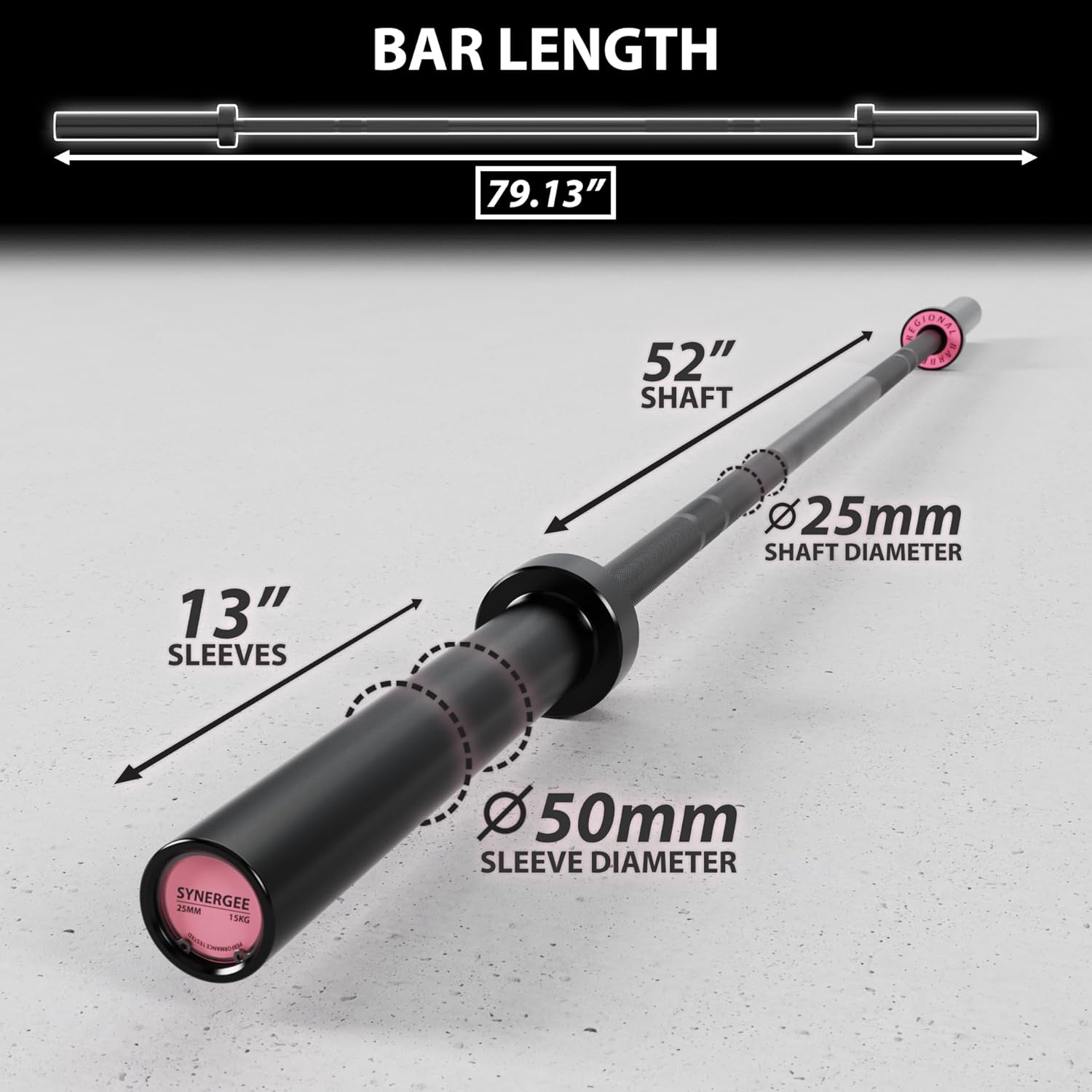 Synergee Regional Olympic 20kg Men’s and 15kg Women’s Hard Chrome & Black Phosphate Barbells. Rated 1500lbs for Weightlifting and Powerlifting.