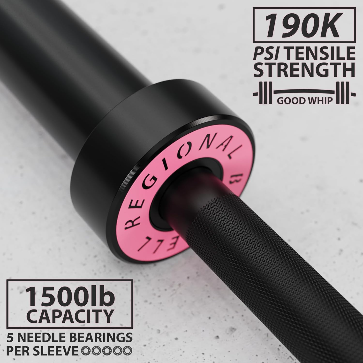 - ★ UNMATCHED PERFORMANCE ★ – Engineered for versatility, the 1.2mm diamond knurl delivers the ideal balance of grip and comfort. Each sleeve is equipped with 5 needle bearings (10 total), ensuring smooth rotation and optimal whip for Olympic lifts while maintaining the stiffness needed for squats, deadlifts, and presses. Built to endure, the Regional Barbell is designed to handle repeated drops—even from overhead—without compromising performance.