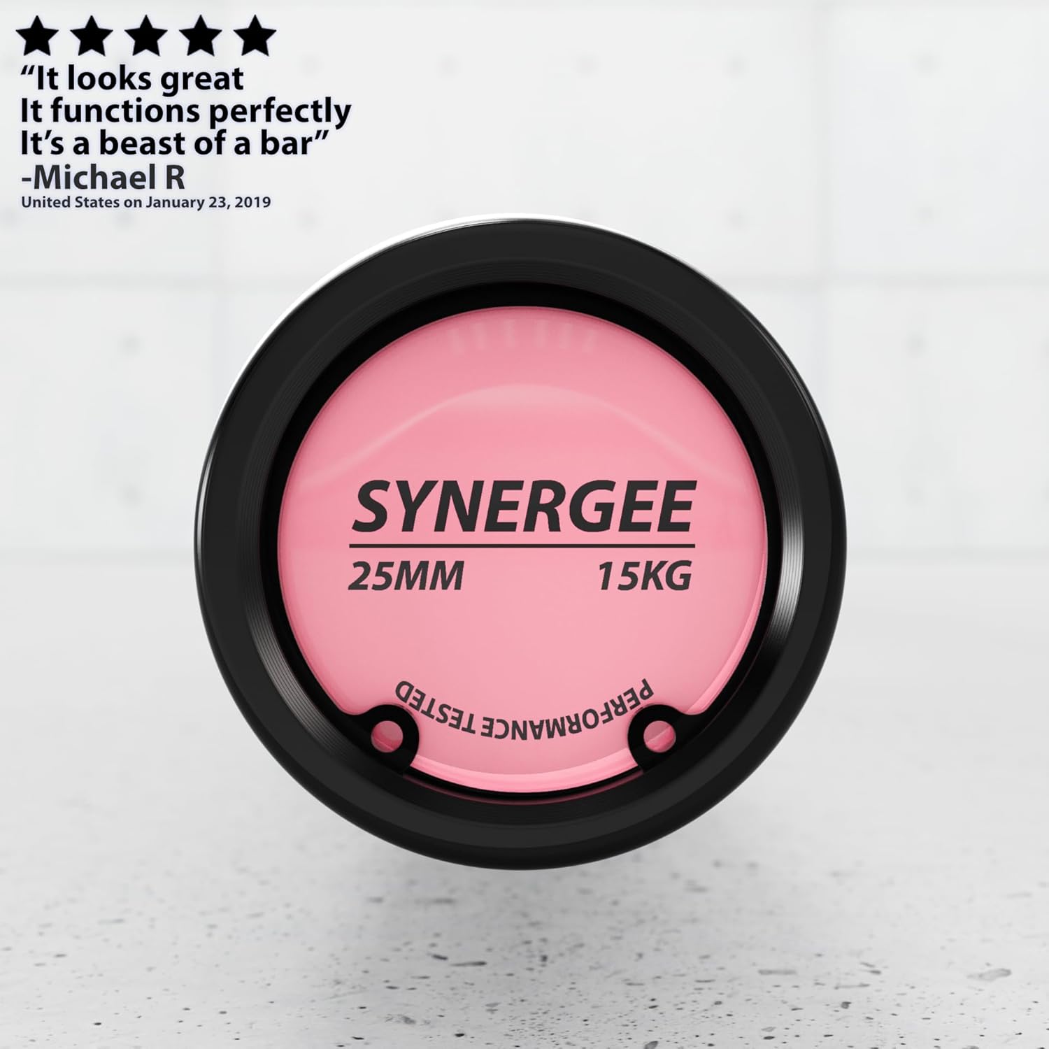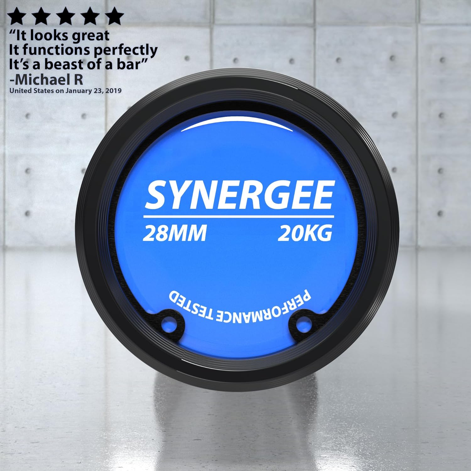 Synergee barbells are made with world renowned steel! These barbells are made with a high tensile strength of 190,000 PSI. Made with the perfect amount of “whip” and “flex” for weightlifting, Synergee barbells still have the stiffness needed for heavy powerlifting, olympic lifting, body building and crushing WODs. Each bar is tested for straightness and balance throughout the barbell. Comfort in your grip comes from the knurl. Our goal was to create a full and uniform pattern that is not too aggressive but still gives the maximum grip you need. The knurling on a barbell is ground onto the bar by a specialized machine. The pattern features two sets of diagonal lines, each set going in the opposite direction, so that they form thousands of tiny little diamonds. These diamonds keep your hands from slipping, ensuring your comfort throughout your workout. After testing multiple knurls, we settled on a standard knurl with dual knurl marks. The inner knurl mark is for powerlifting, while the outer is for Olympic weightlifting. The silicone rings on each barbell sleeve are color coordinated with bumper plate colors. We added this unique feature for the ease of know which bar is which at a quick glance.