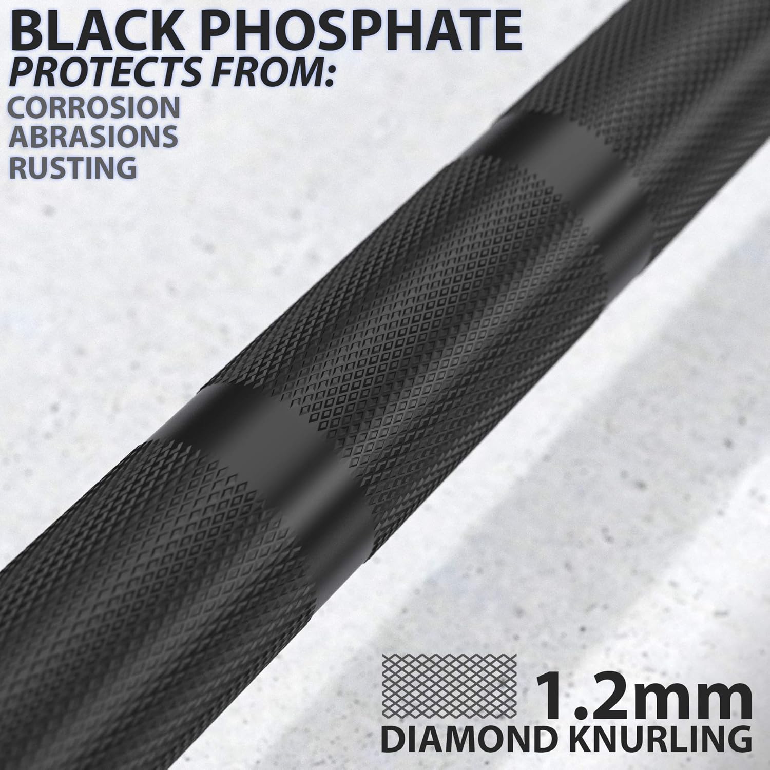 - ★ BUILT TO PERFORM ★ – The 15KG Regional Barbell is crafted from high-quality steel, featuring an impressive 190,000 PSI tensile strength and a max load capacity of 1500 lbs. Designed for durability and performance, it offers a balanced knurl with dual markings for a firm yet comfortable grip. The black phosphate-coated shaft and sleeves enhance resistance to oxidation and wear, ensuring long-lasting reliability.