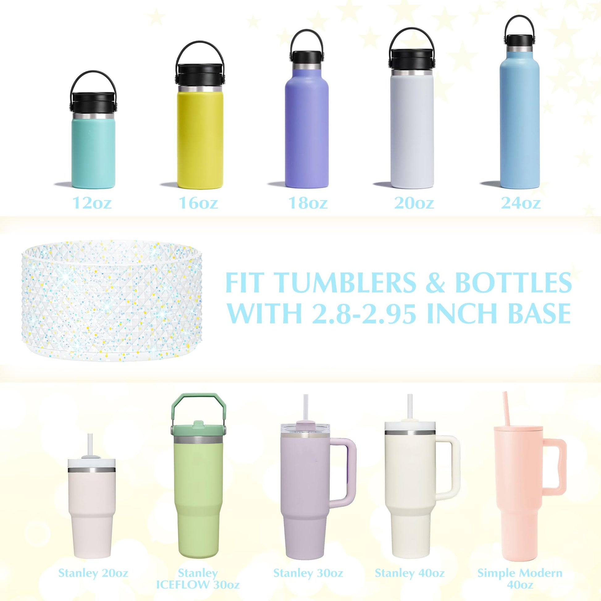 - Fits Perfectly:Silicone water bottle boot is compatible with Owala 24oz FreeSip,Twist,and Flip stainless steel water bottles,Owala Tumbler 40oz. Compatible with Stanley Quencher H2.0 Cup(30/40oz),for Stanley lceFlow Tumbler(20/30oz).Compatible with Simple Modern Tumbler 40oz and Yeti Rambler Tumbler(20/30oz).Compatible with Hydro Flask 40oz All Around Travel Tumbler. Note:DOESN’T FIT for Owala 32/40oz water bottle.