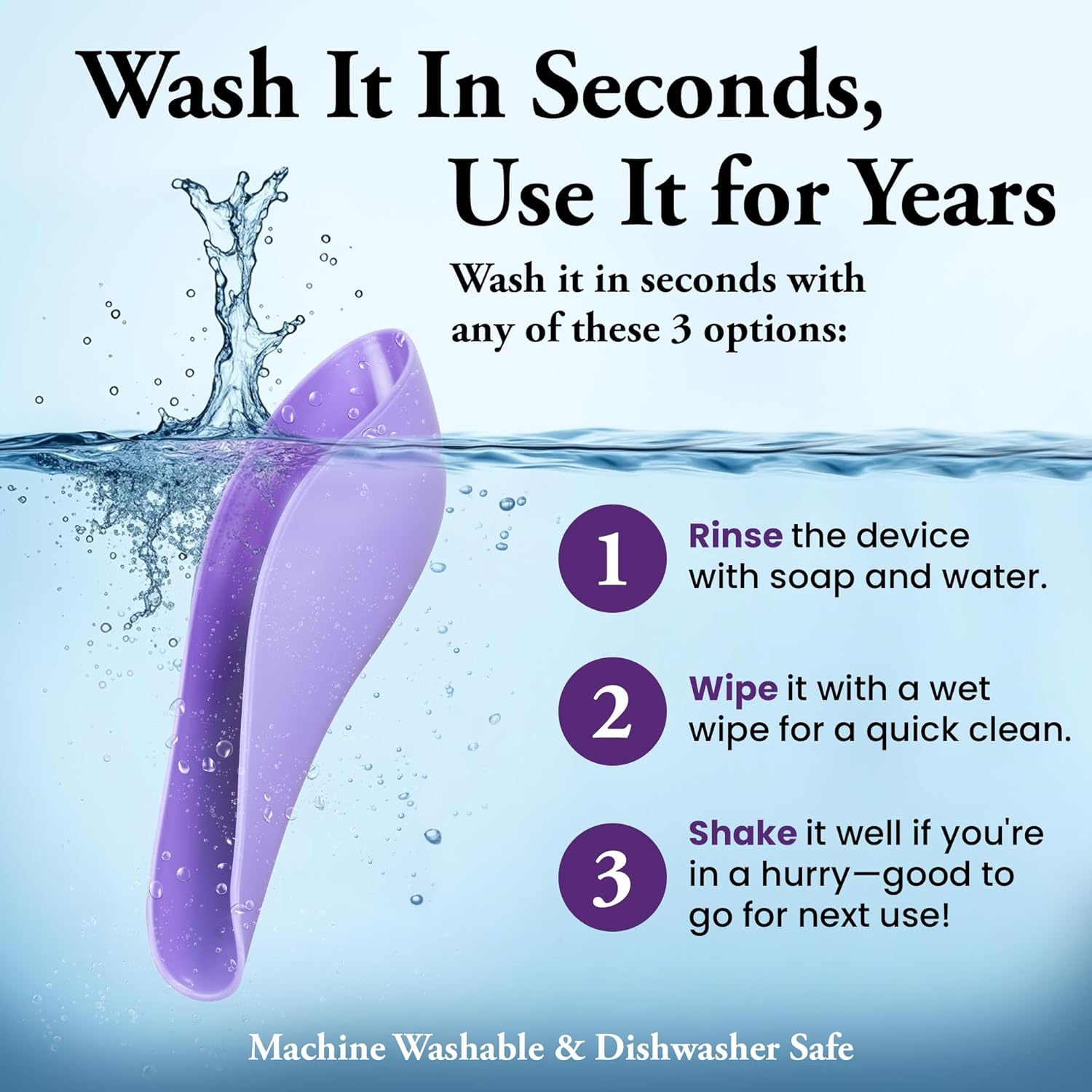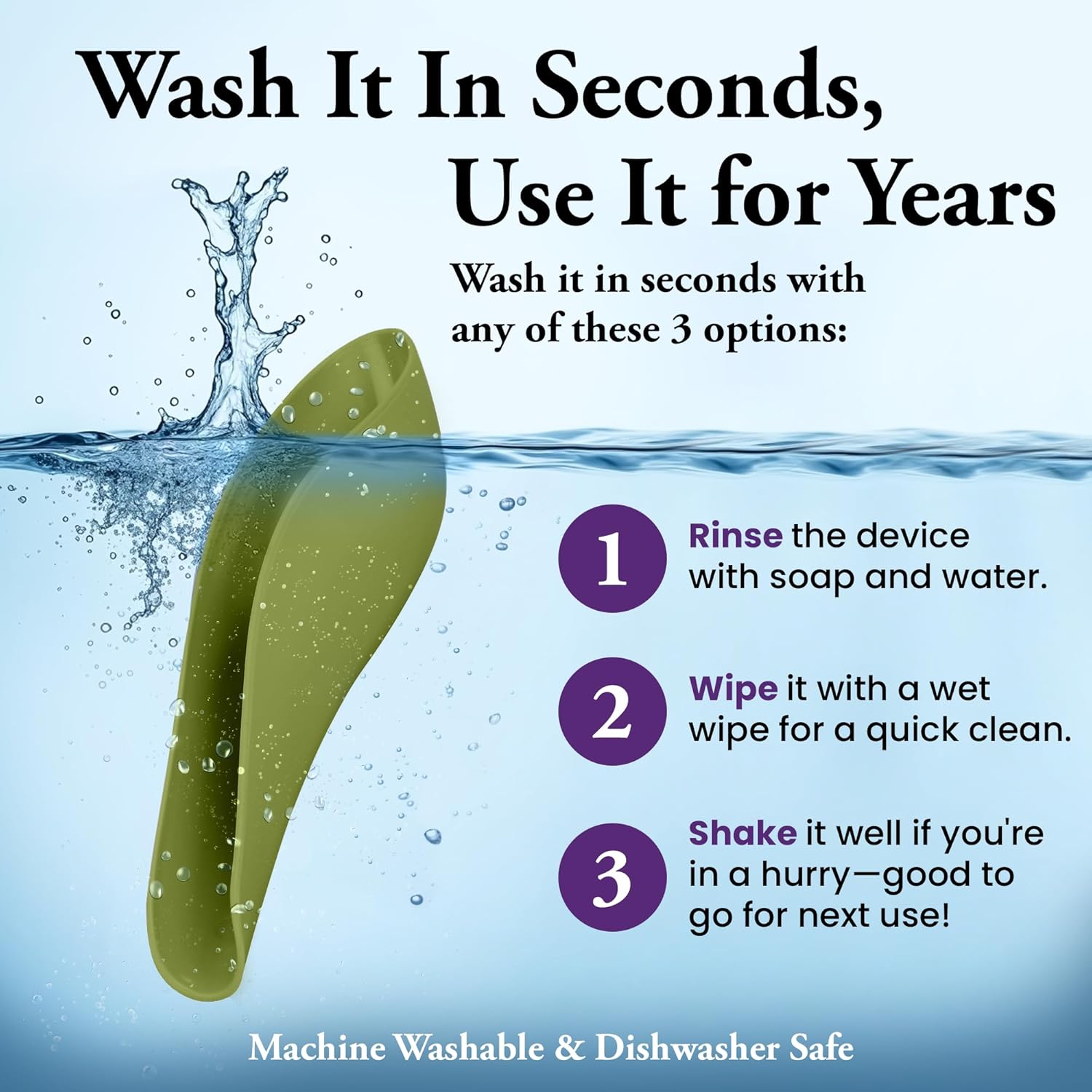 - Reusable & Easy to Clean- Our feminine urination device is made from strong, rigid, and durable plastic which makes it long lasting and easy to clean. Simply rinse with soap and water or shake vigorously and it’s ready to be used again. It’s even Dishwasher and Washing machine safe.