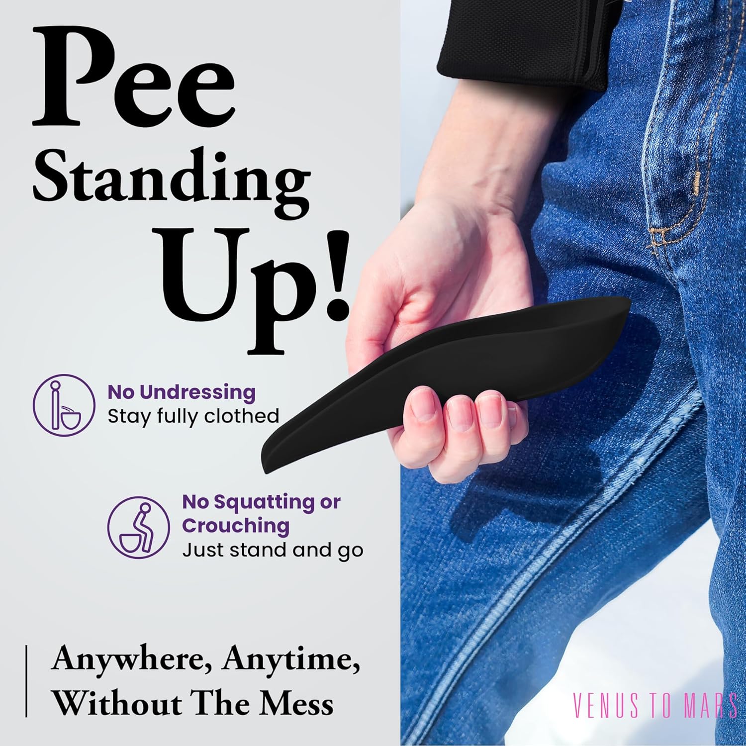 - Pee Standing Up Without Getting Undressed - with the Venus to Mars Female Urination Device you will no longer have to worry about dirty toilets, bushes, or Pota-Potties. This Female Urinal will free you from having to squat or crouch over while peeing; and you DON’T need to get undressed to use it!