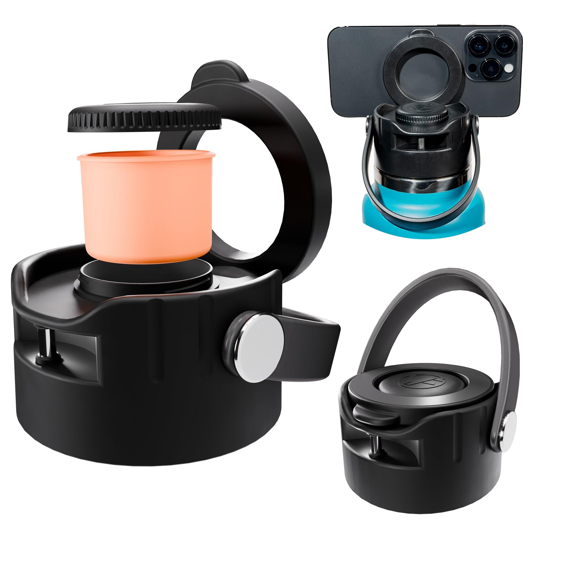 Versafactor MagSafe Wide Mouth Lid for Hydro Flask Water Bottle, Magnetic Phone Holder for All Phones, AirTag or Tile Sticker Holder and Hidden Storage Compartment